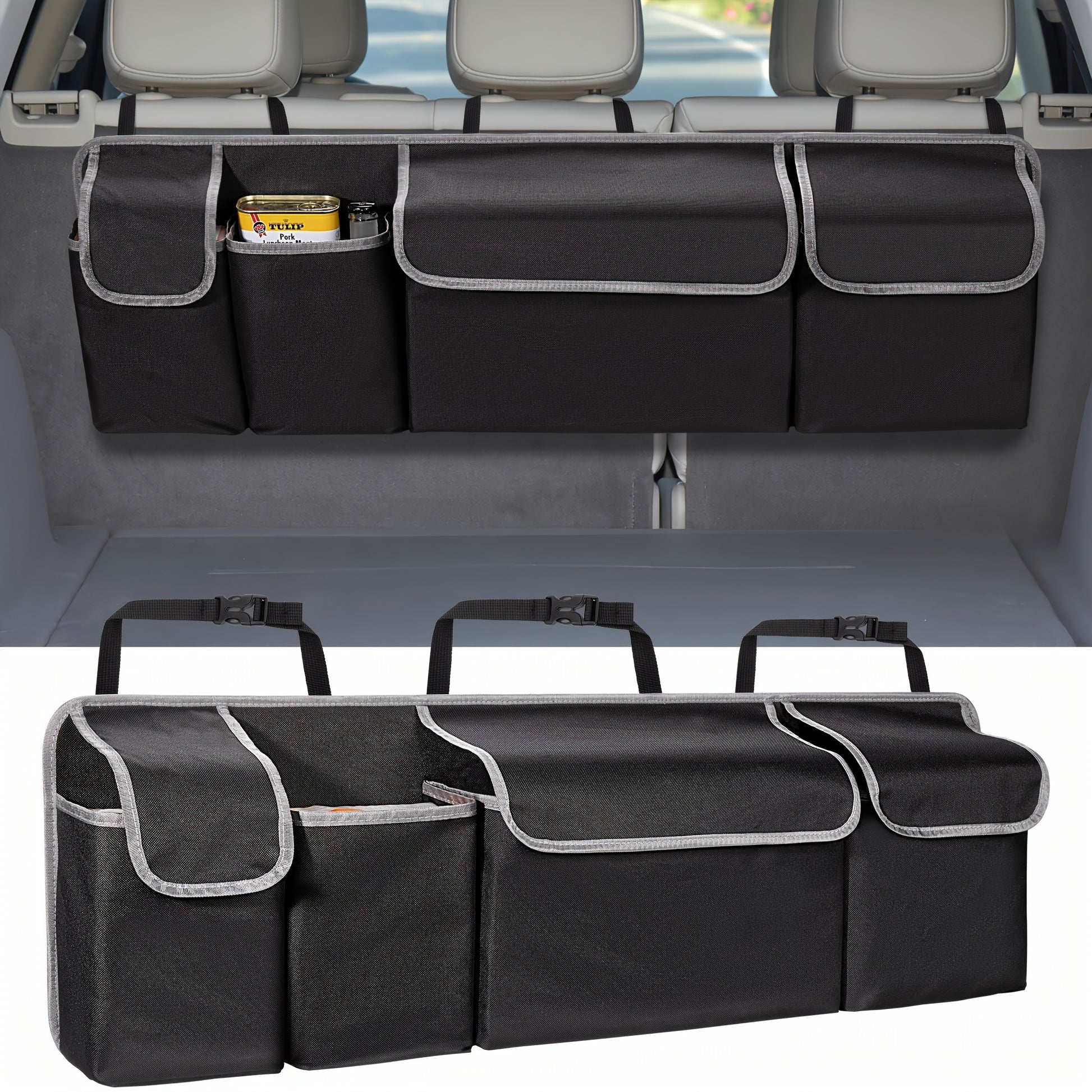 Organizador de asiento trasero para coche, de nylon, con 4 bolsillos, almacenamiento de carga para SUVs, camiones y furgonetas