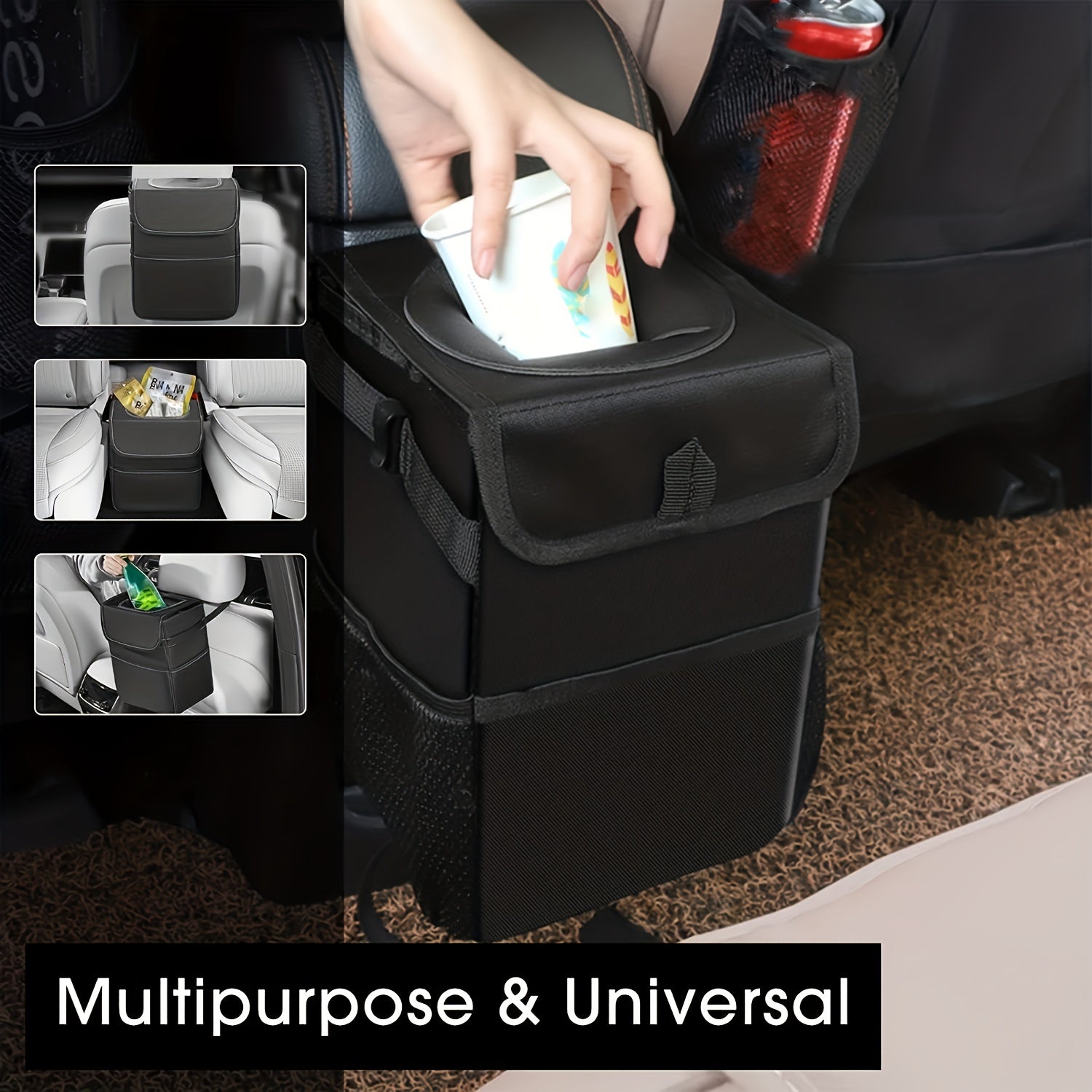 Cubo de basura para coche, de poliéster impermeable, a prueba de fugas, colgante y con almacenamiento