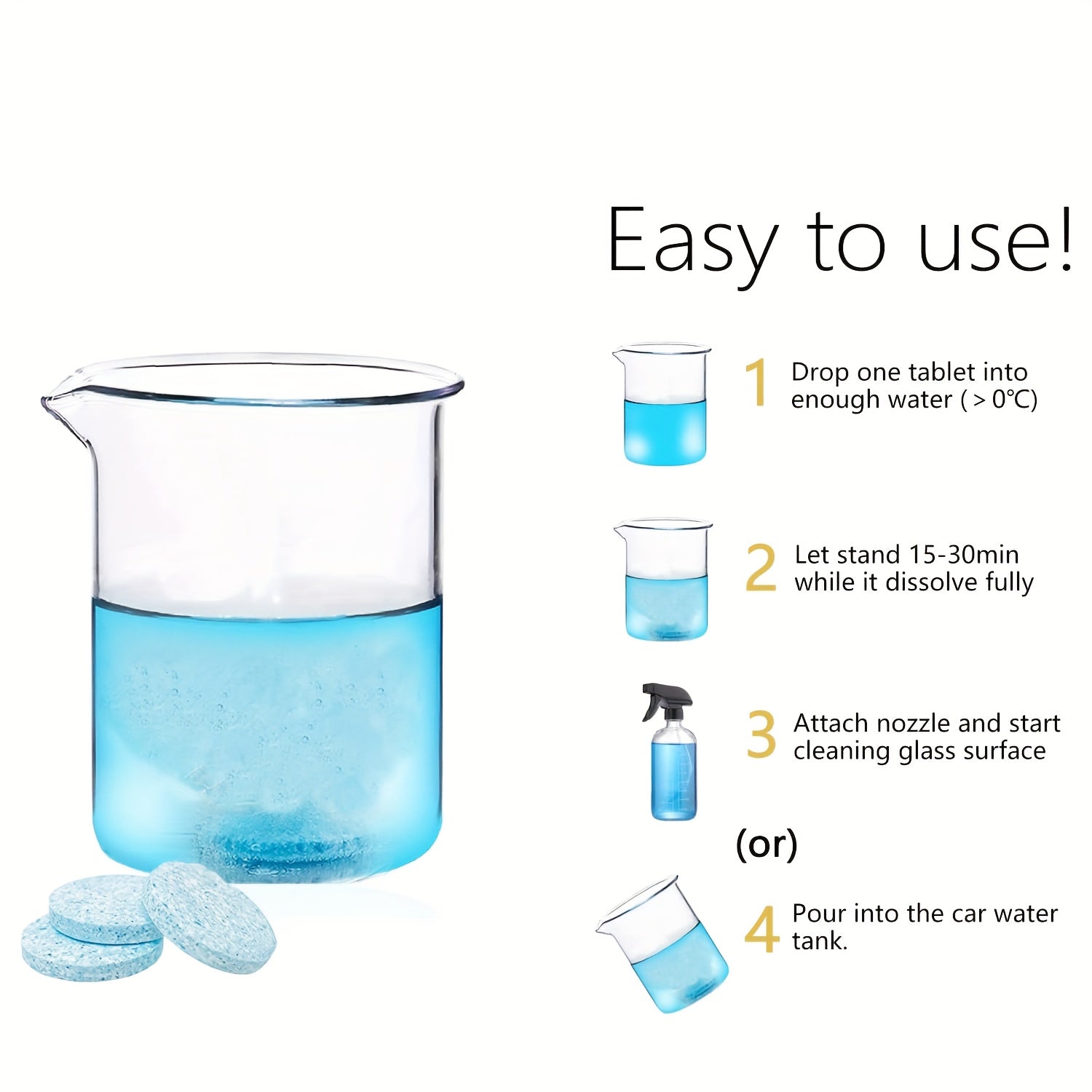 Concentrado para limpiaparabrisas de coche 20/80/160 tabletas sin fragancia, libre de residuos