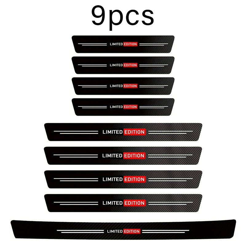 Protectores de umbral de puerta de coche de fibra de carbono 9 piezas antideslizantes, resistentes a los arañazos, ajuste universal