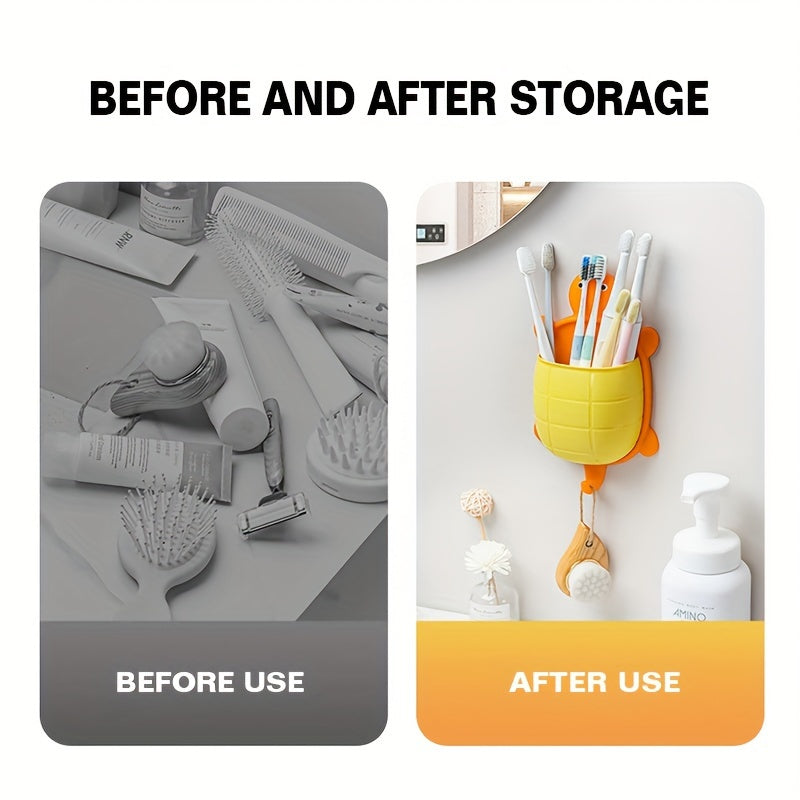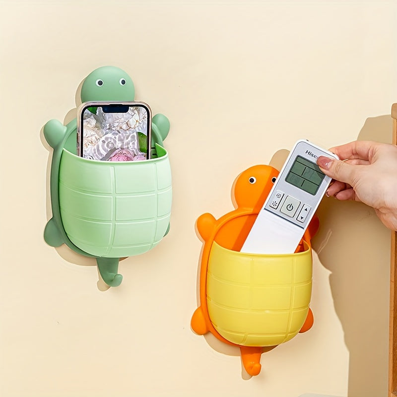 Cesta de almacenamiento de tortuga de dibujos animados para pared, organizador de cocina y baño, plástico duradero