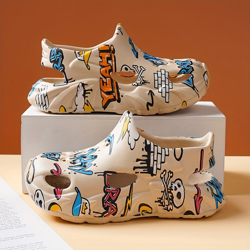 Zapatillas de charol con dibujos animados para niños para niños, ligeras, antideslizantes, para uso en interiores y exteriores