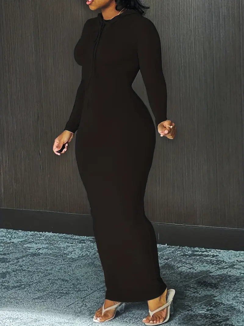 Vestido casual de mujer con capucha, manga larga y cordón en color sólido