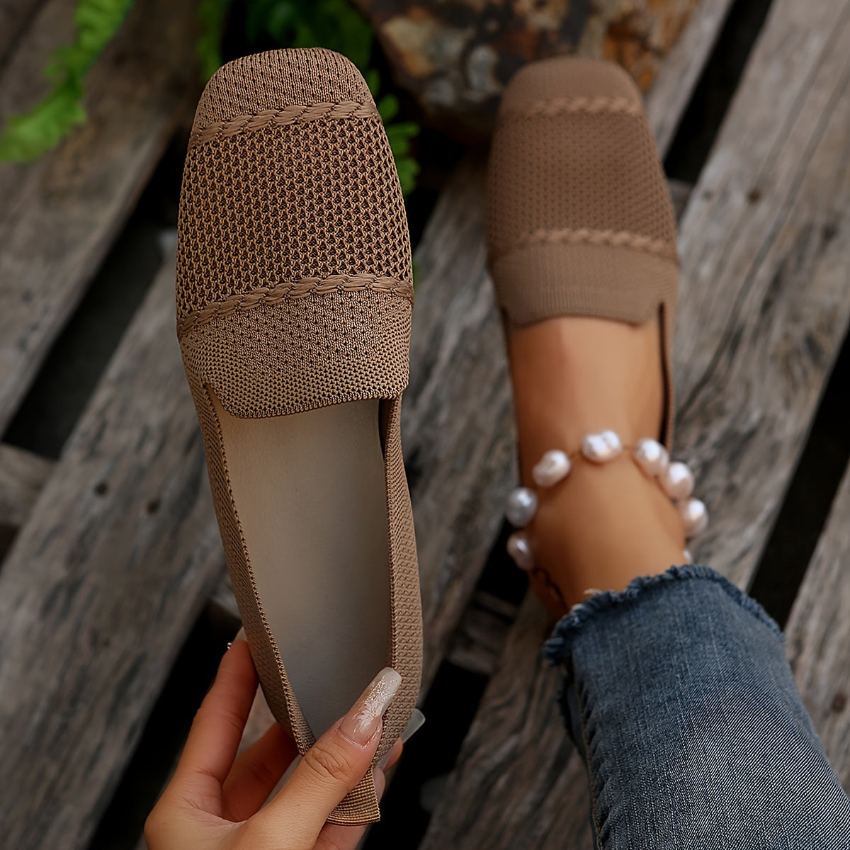 Zapatos de mujer sin cordones con tela de punto transpirable, ligeros, punta cuadrada, para todas las estaciones, ballet