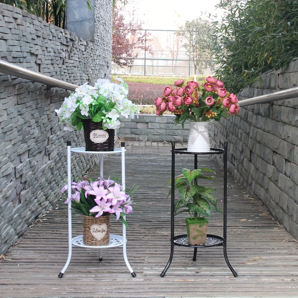 Soporte para plantas colgantes de doble capa de metal con patrón de flores, decoración para interiores y exteriores