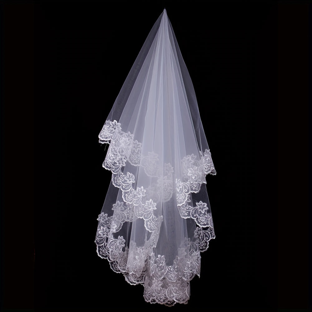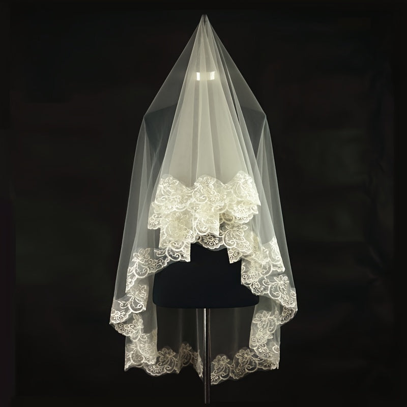 Velo de novia con borde de encaje 1.5m/3m capa sencilla romántica y femenina