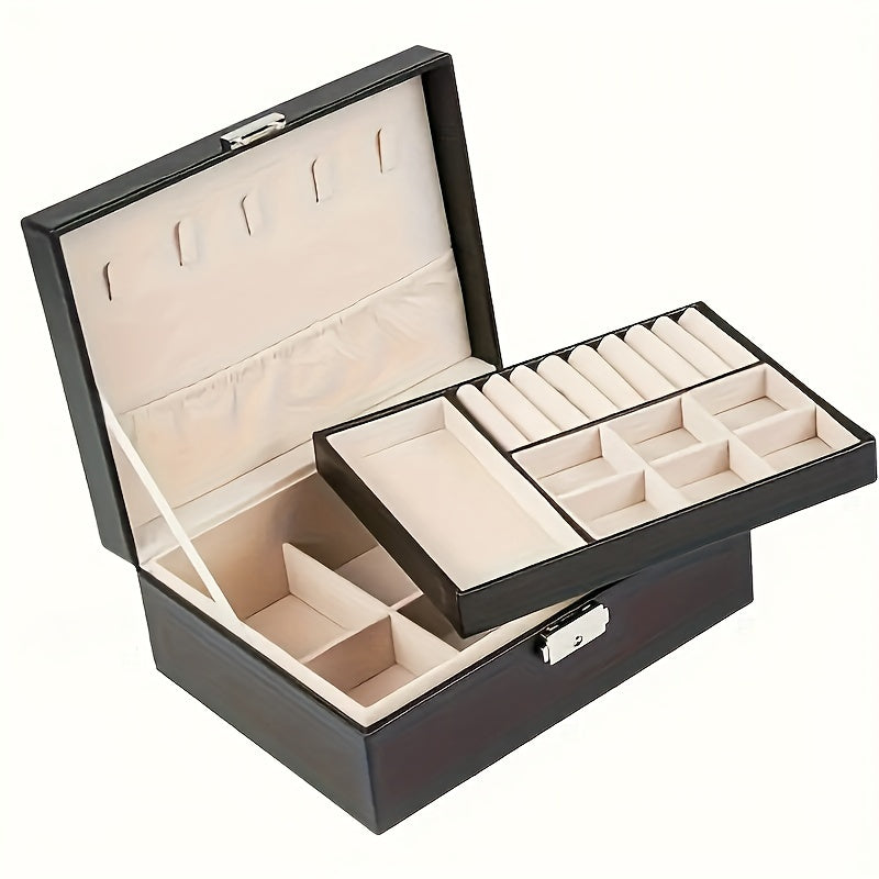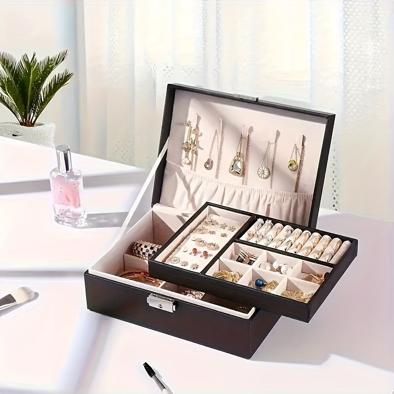Joyero de cuero sintético con cerradura y cajón forrado suave para mujeres y niñas