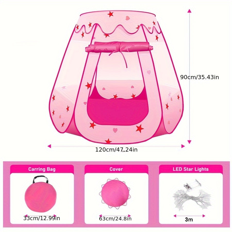 Tienda de juegos rosa para niños con luces de estrella y techo removible para interiores y exteriores
