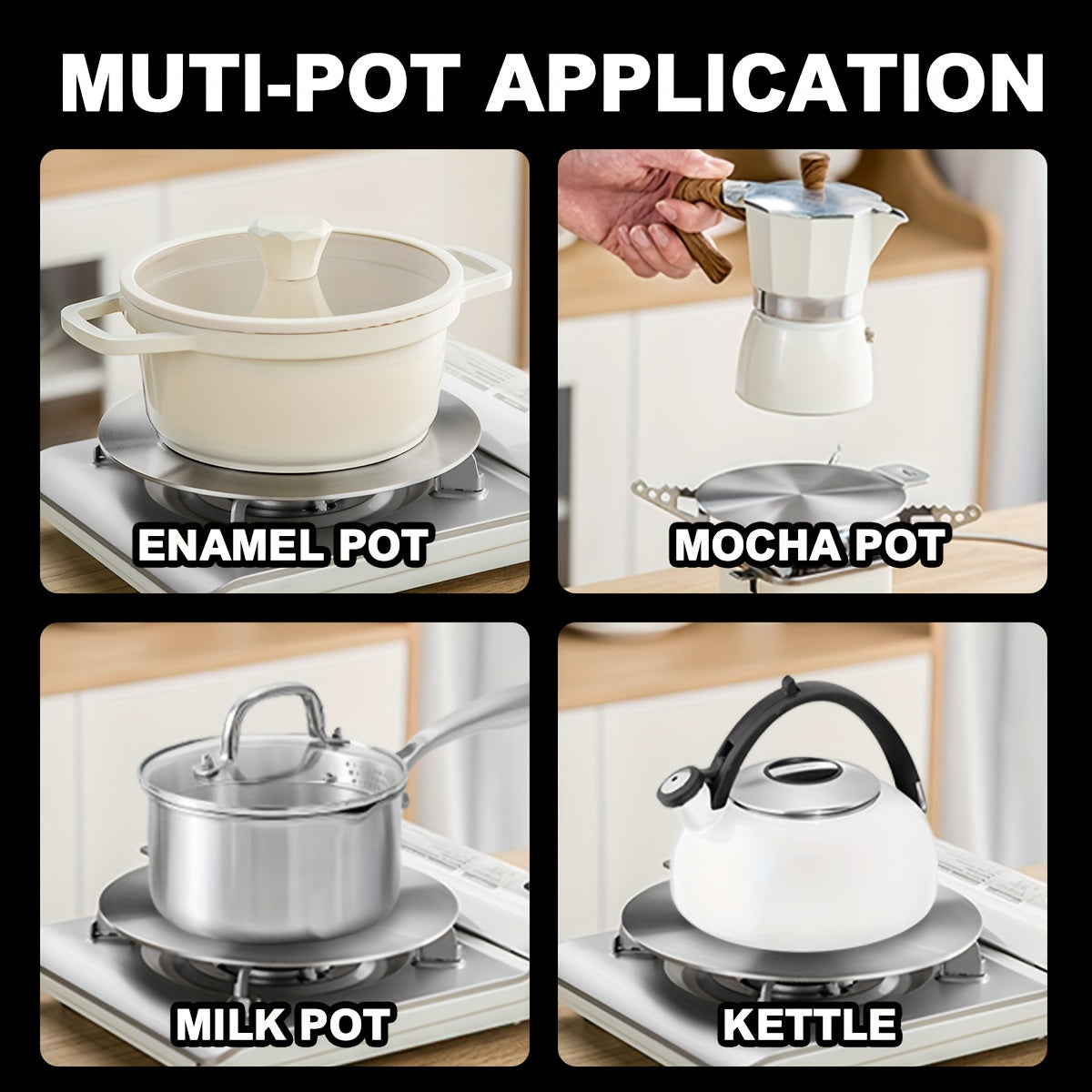 Placa difusora de calor de acero inoxidable con mango desmontable para cocinas de gas y de inducción