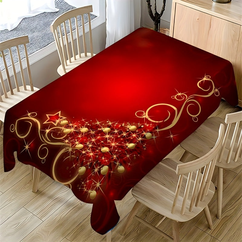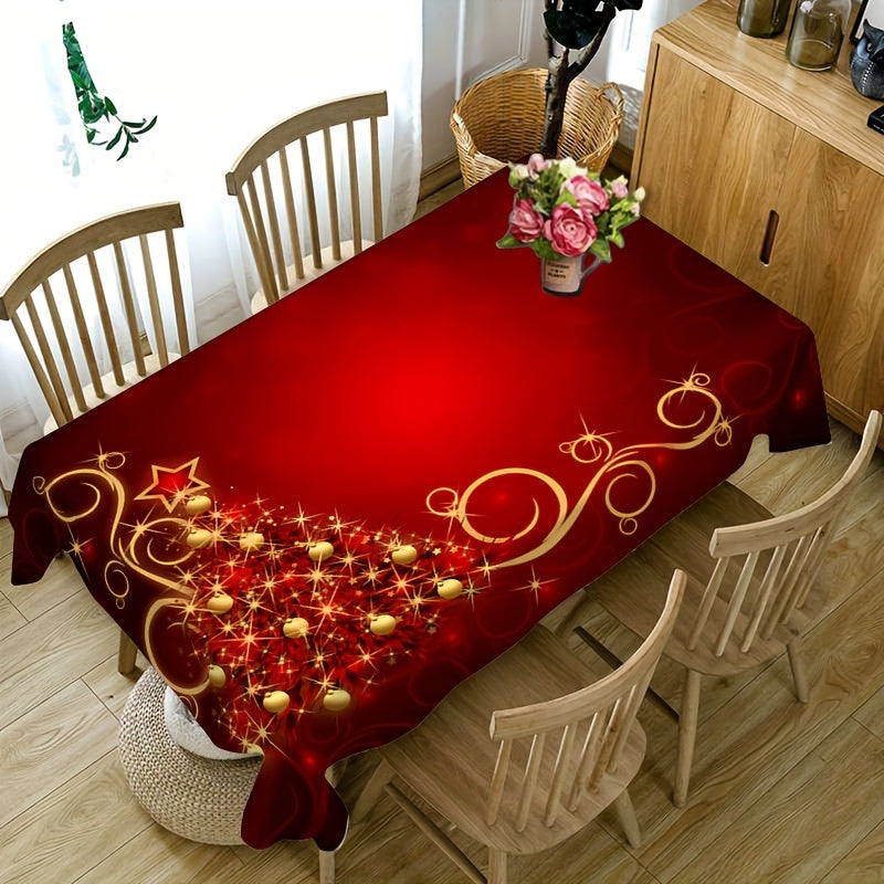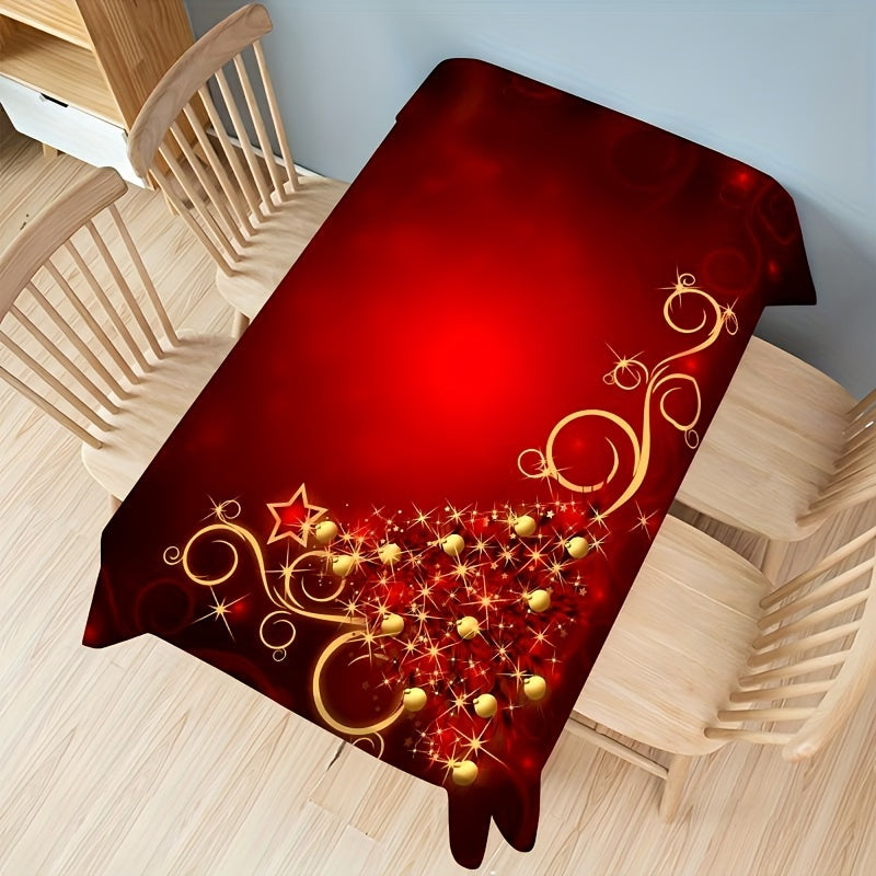 Mantel rectangular de poliéster con temática navideña para uso en interiores y exteriores