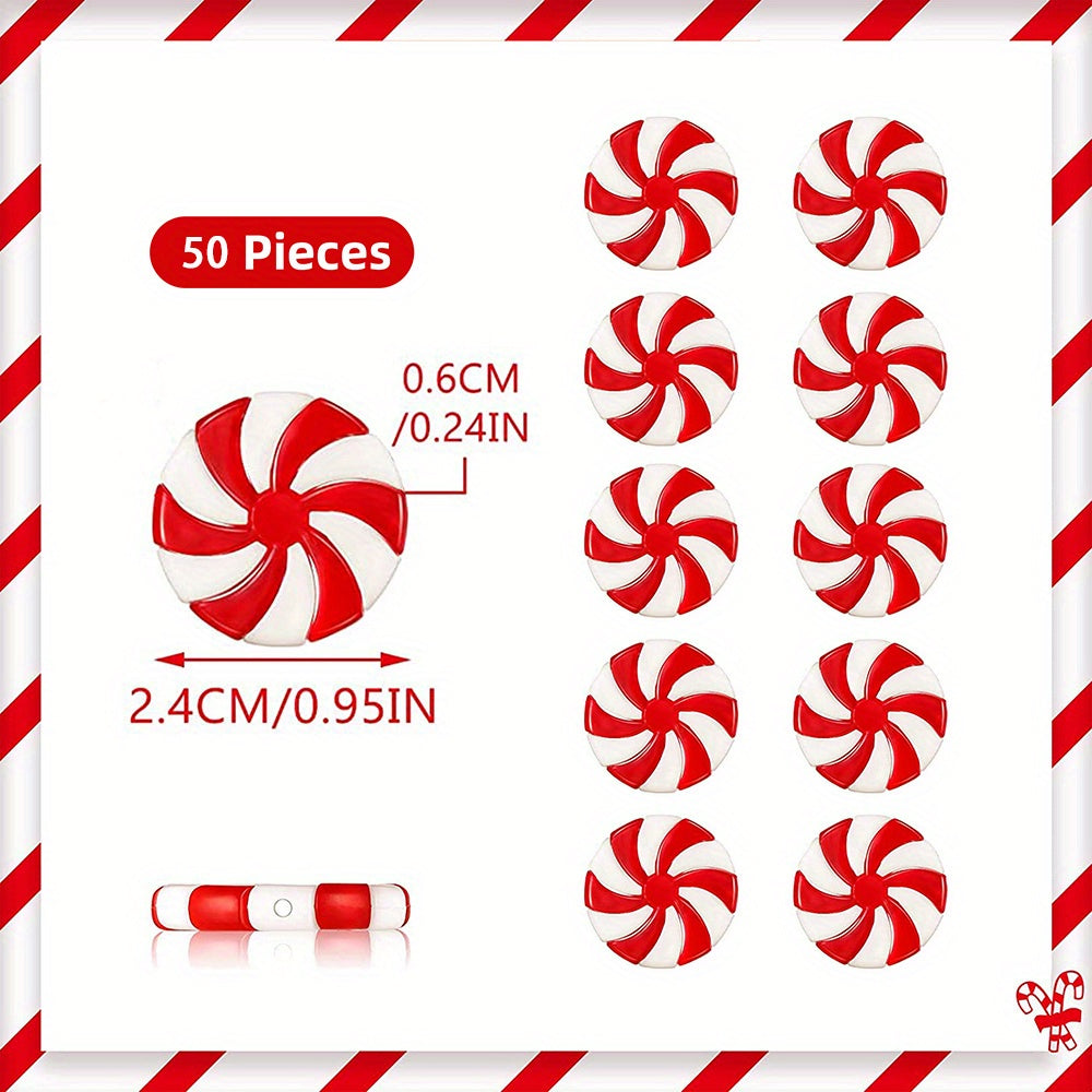Decoraciones de árbol de Navidad rojas y blancas con charms de bastón de caramelo de menta, paquete de 10, 30 o 50