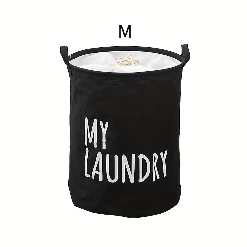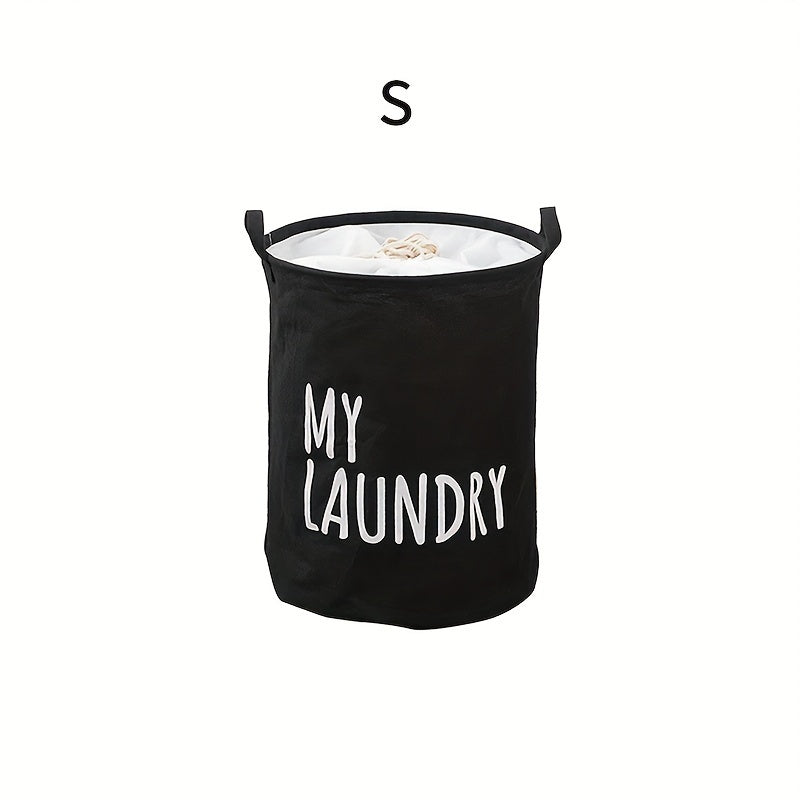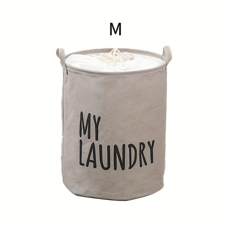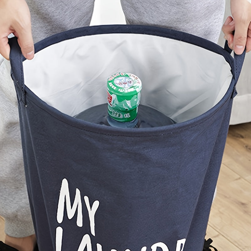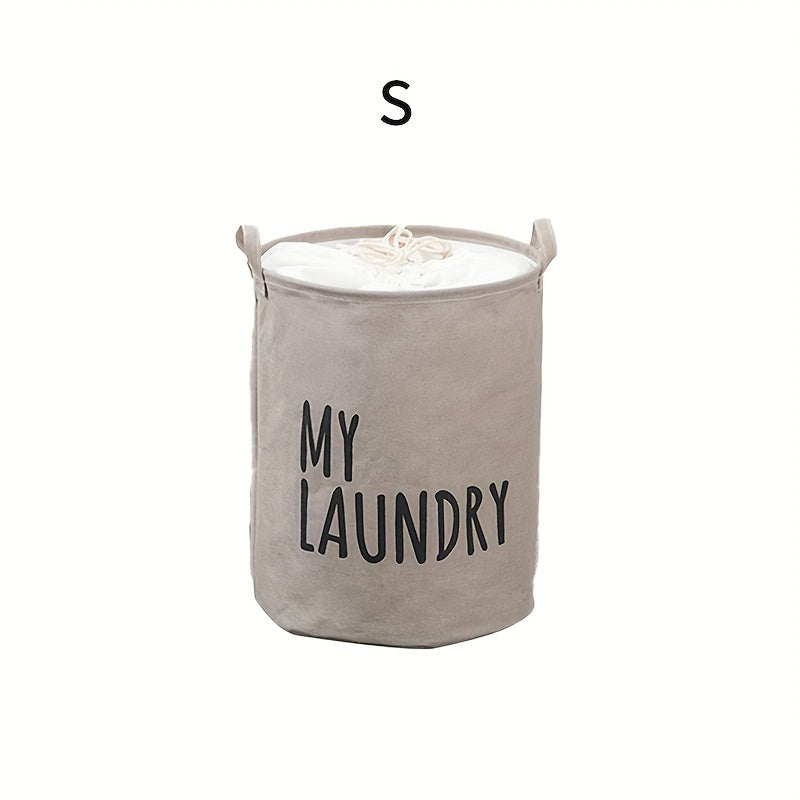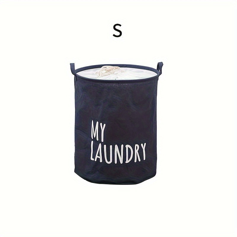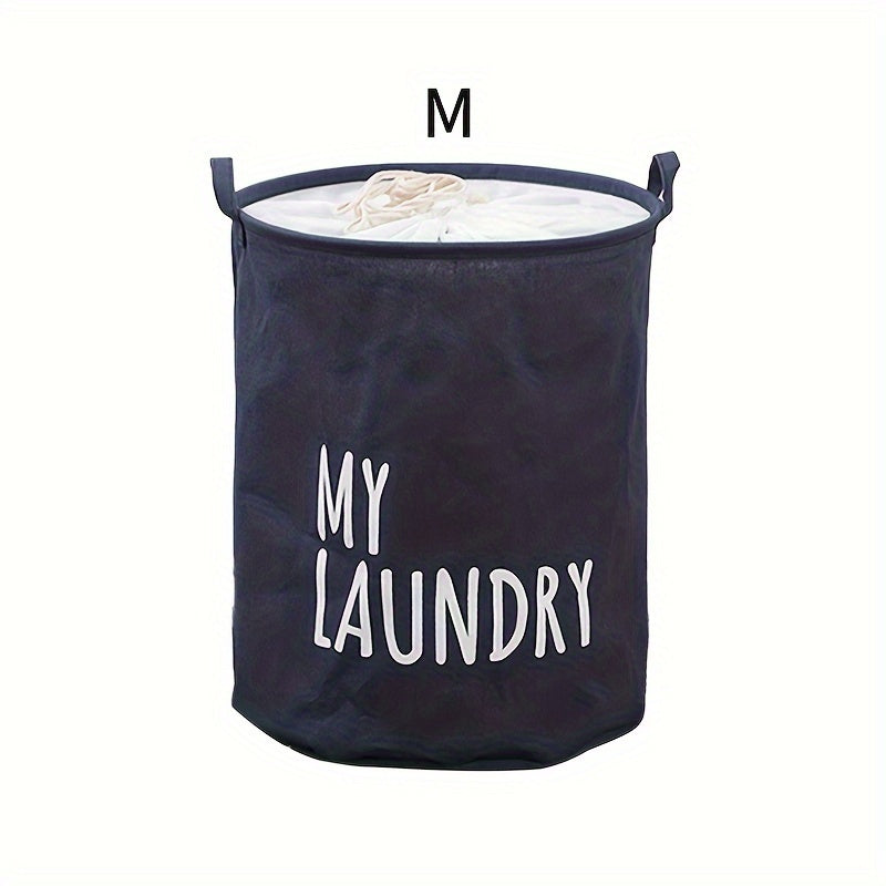 cesta de ropa de tela gruesa con cierre de cordón, forma cilíndrica, contenedor de almacenamiento plegable, azul marino, blanco y gris
