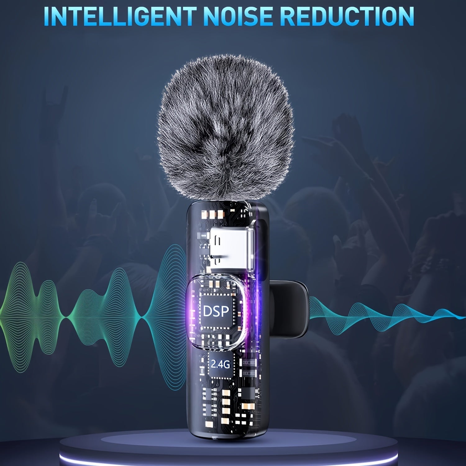 Micrófono de solapa inalámbrico con USB-C, grabación con un toque para streaming y videoconferencias