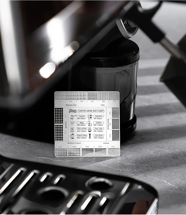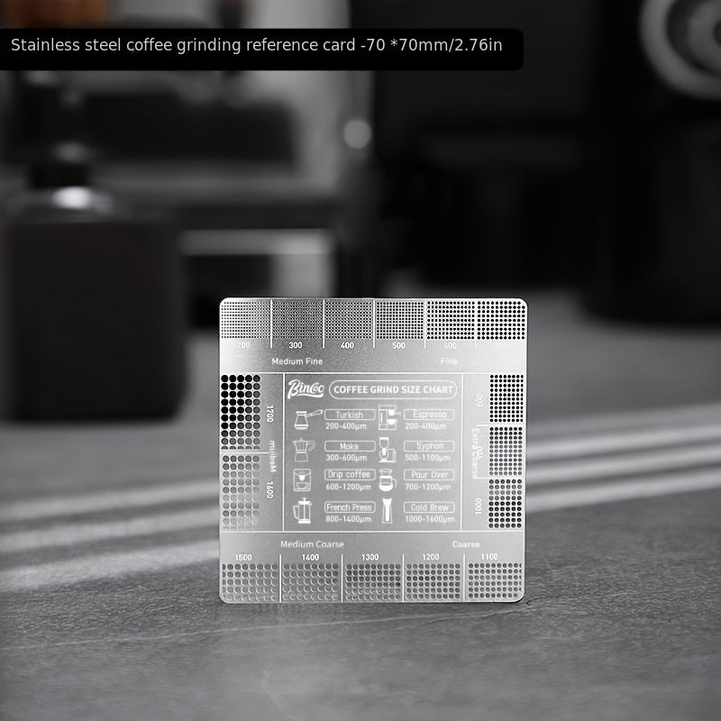 Tarjeta de referencia de la báscula para molinillos de café para comparación del grosor del polvo de café