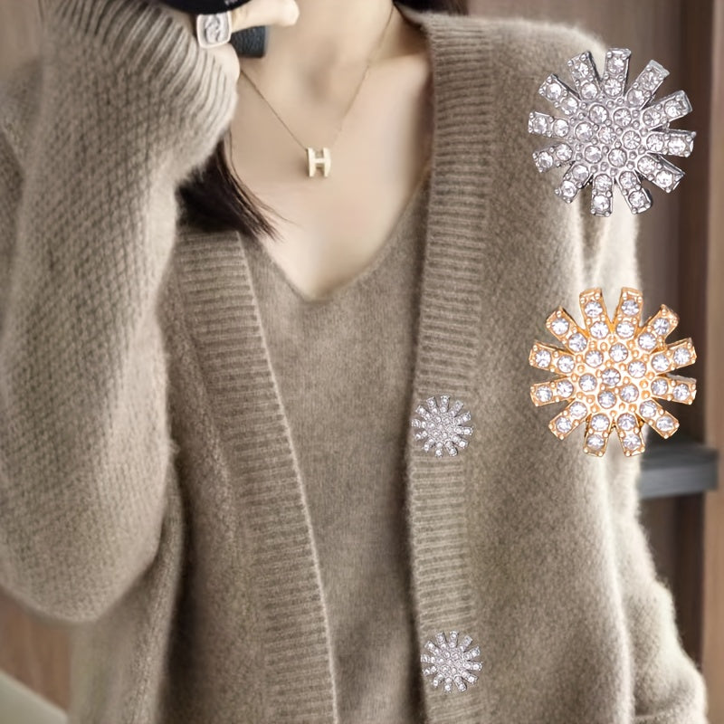 Juego de 9 elegantes botones de aleación con pedrería para camisas, suéteres, blazers