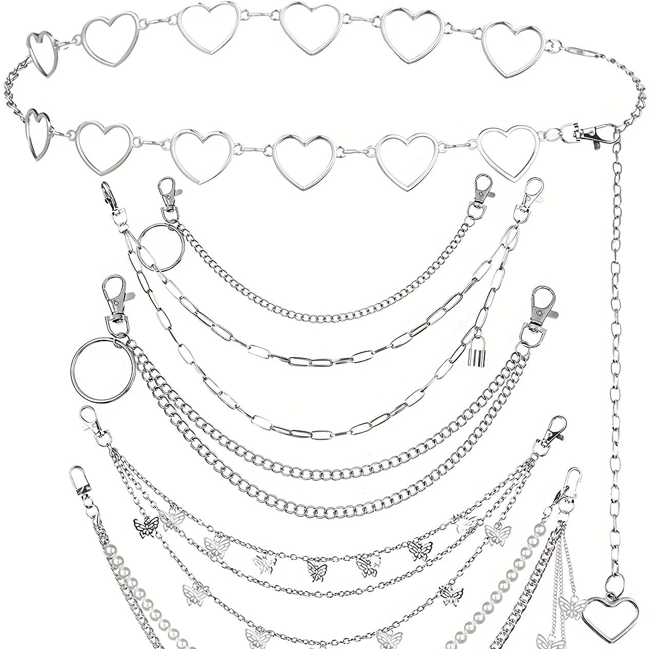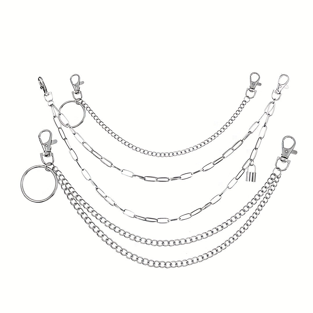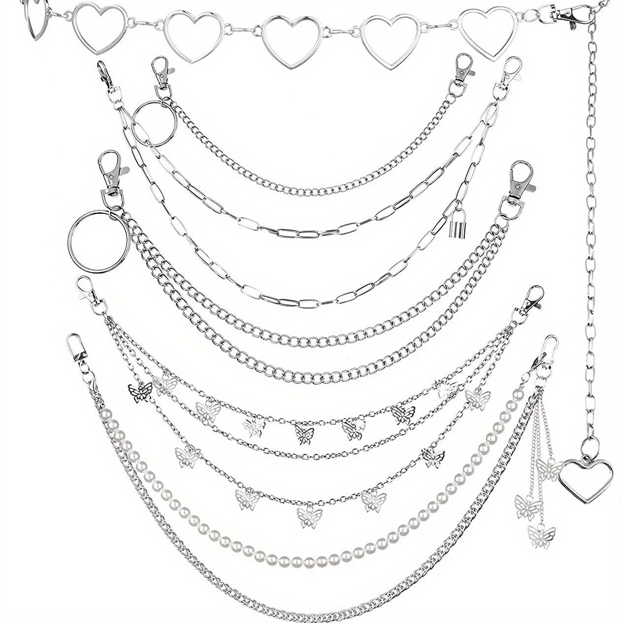 Pantalones de mezclilla punk para hombres y mujeres con cadena en la cintura y cadenas de múltiples capas de hip-hop