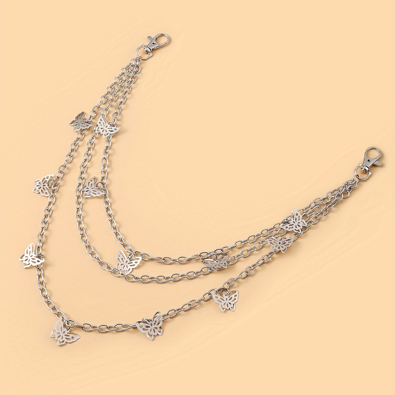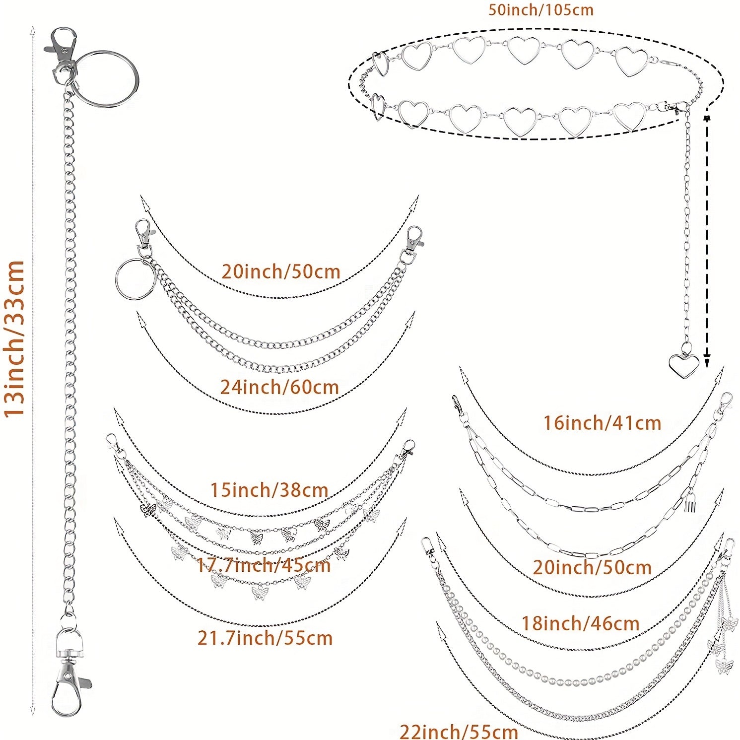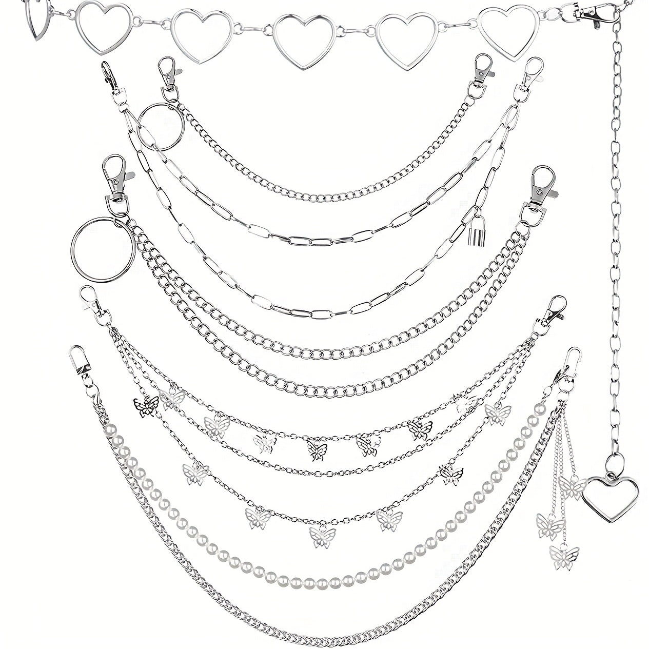 Pantalones de mezclilla punk para hombres y mujeres con cadena en la cintura y cadenas de múltiples capas de hip-hop
