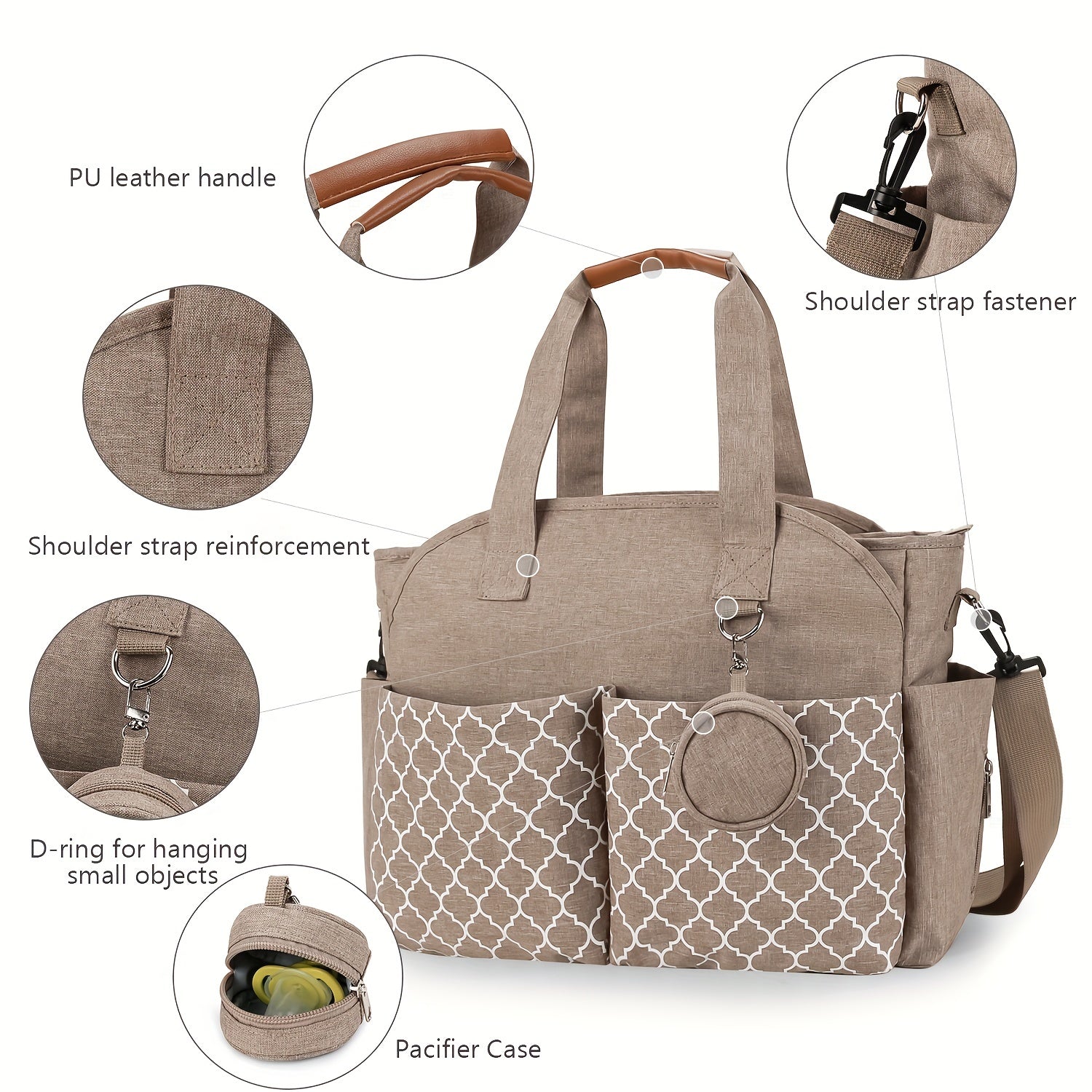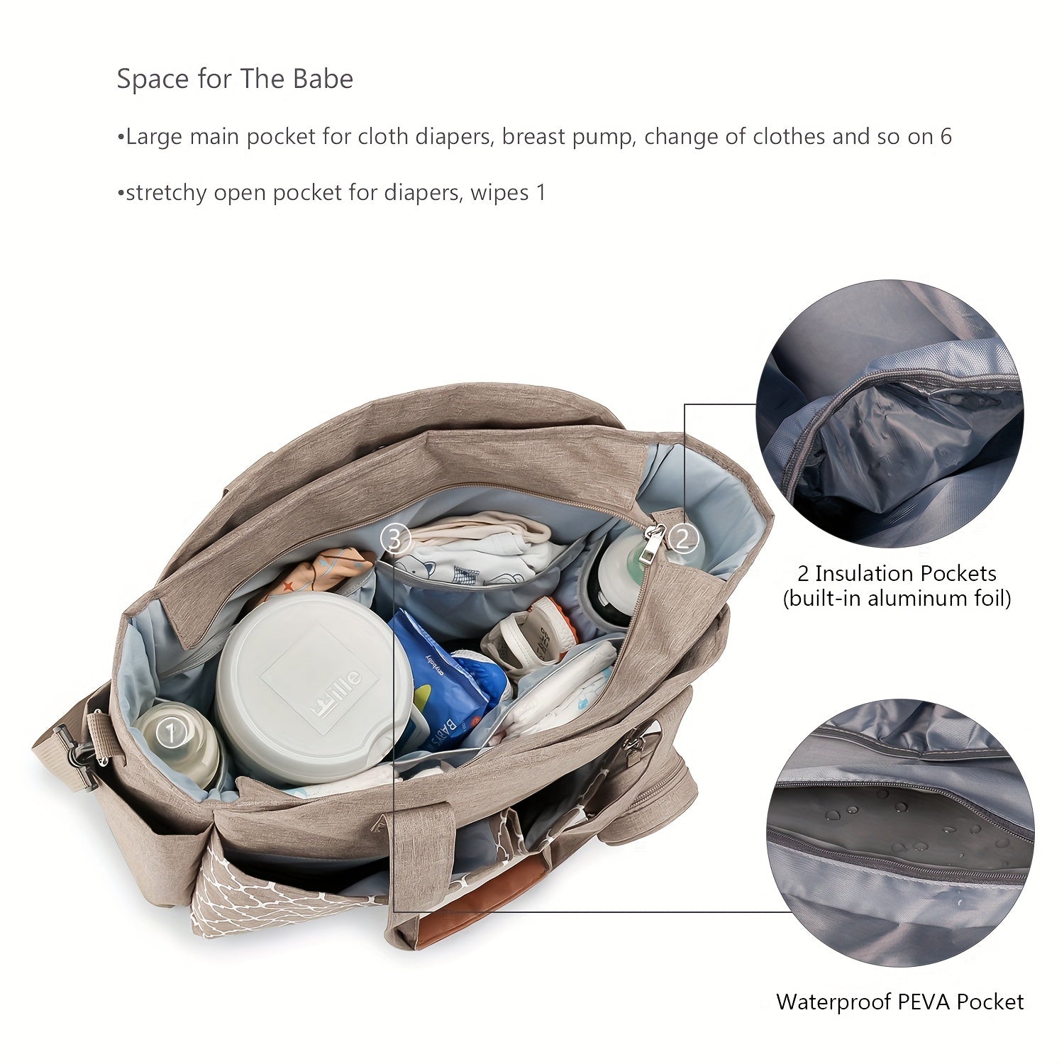 Bolsa de mamá con soporte para biberón de patrón geométrico para madre y bebé para llevar