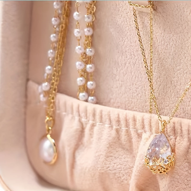 Organizador de joyas de viaje color macaroon, estuche compacto para pendientes, collares y anillos