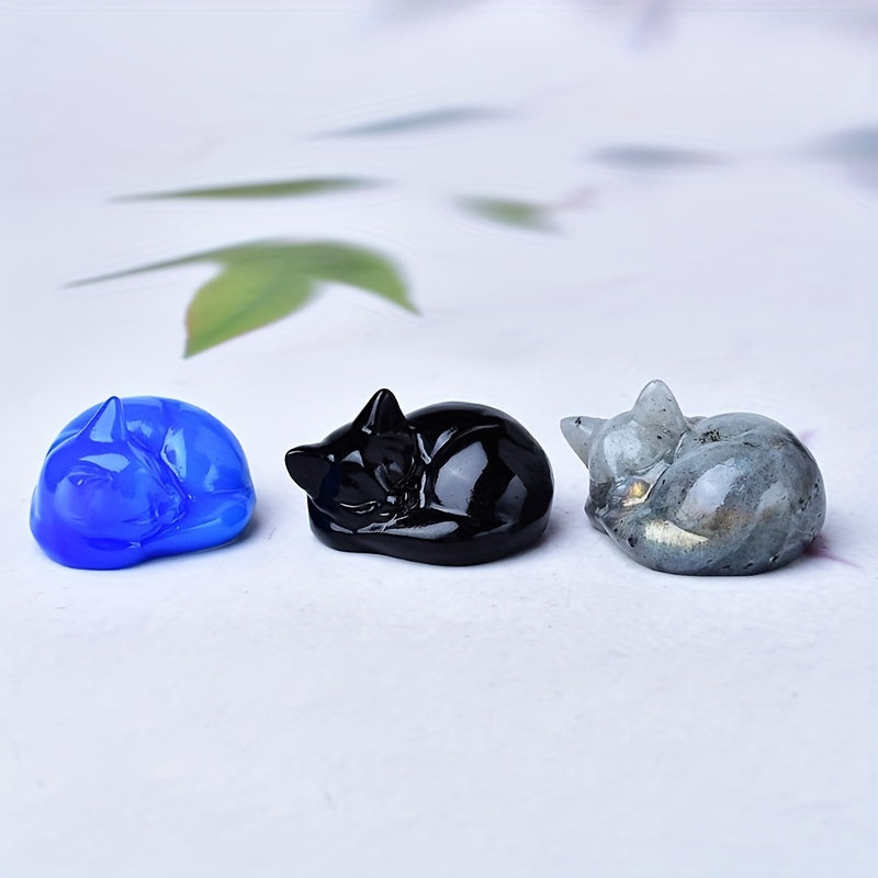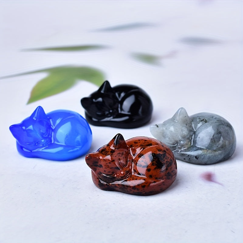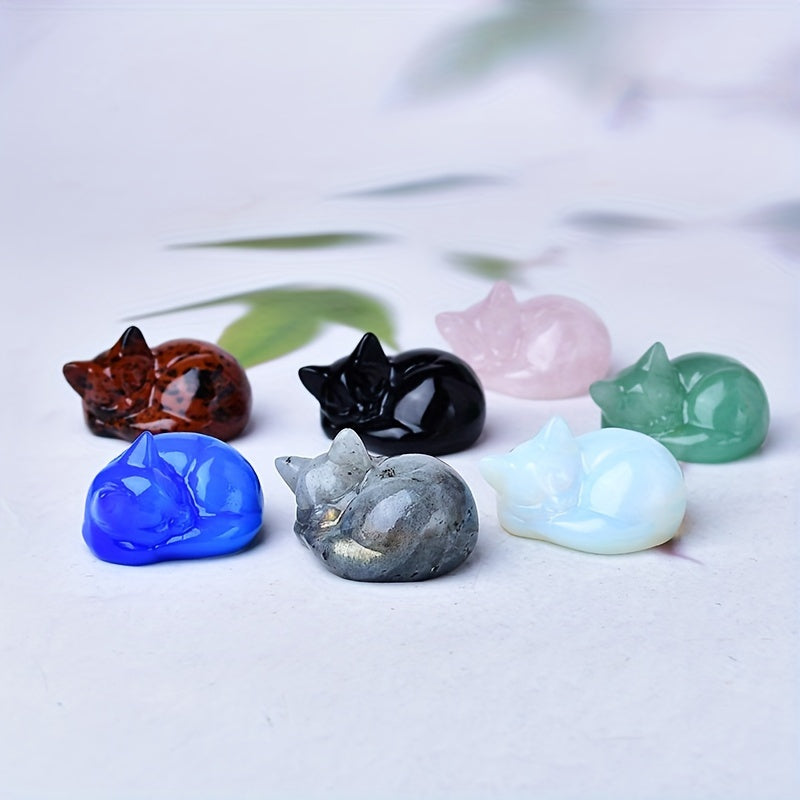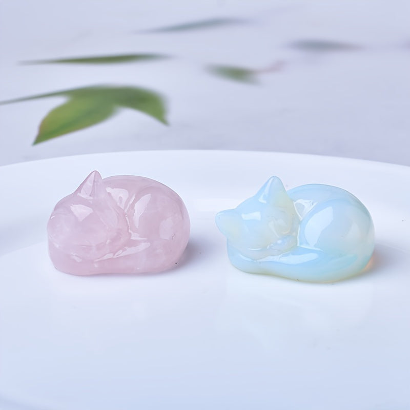 Figura de cristal de gato durmiente tallada en cuarzo natural, decoración para el hogar, regalo, 3.81cm