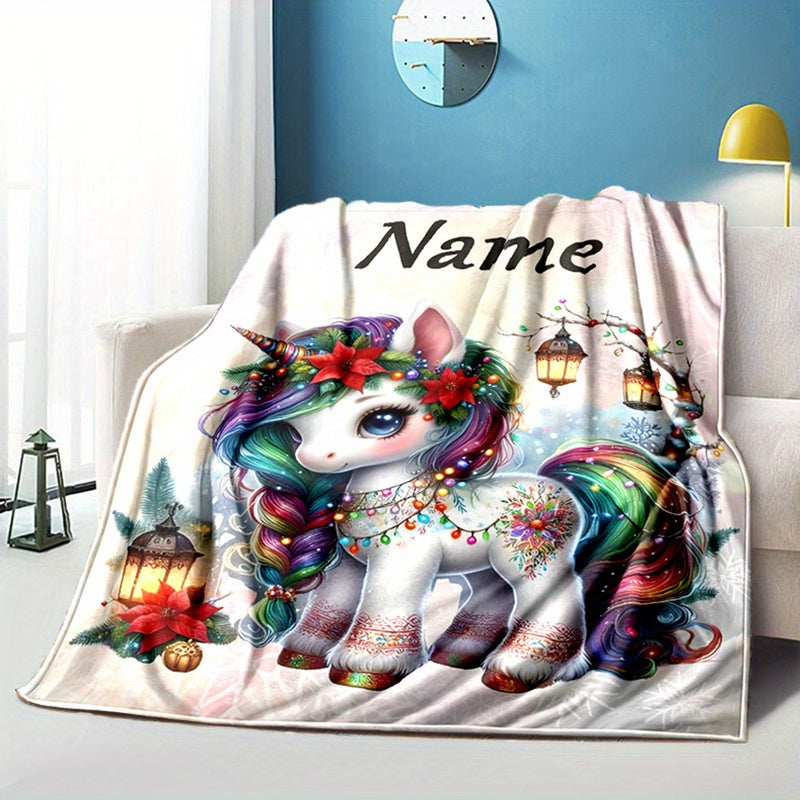 Manta de unicornio personalizada con nombre, suave, acogedora y cálida para acurrucarse, regalo