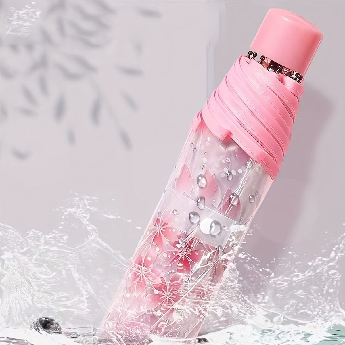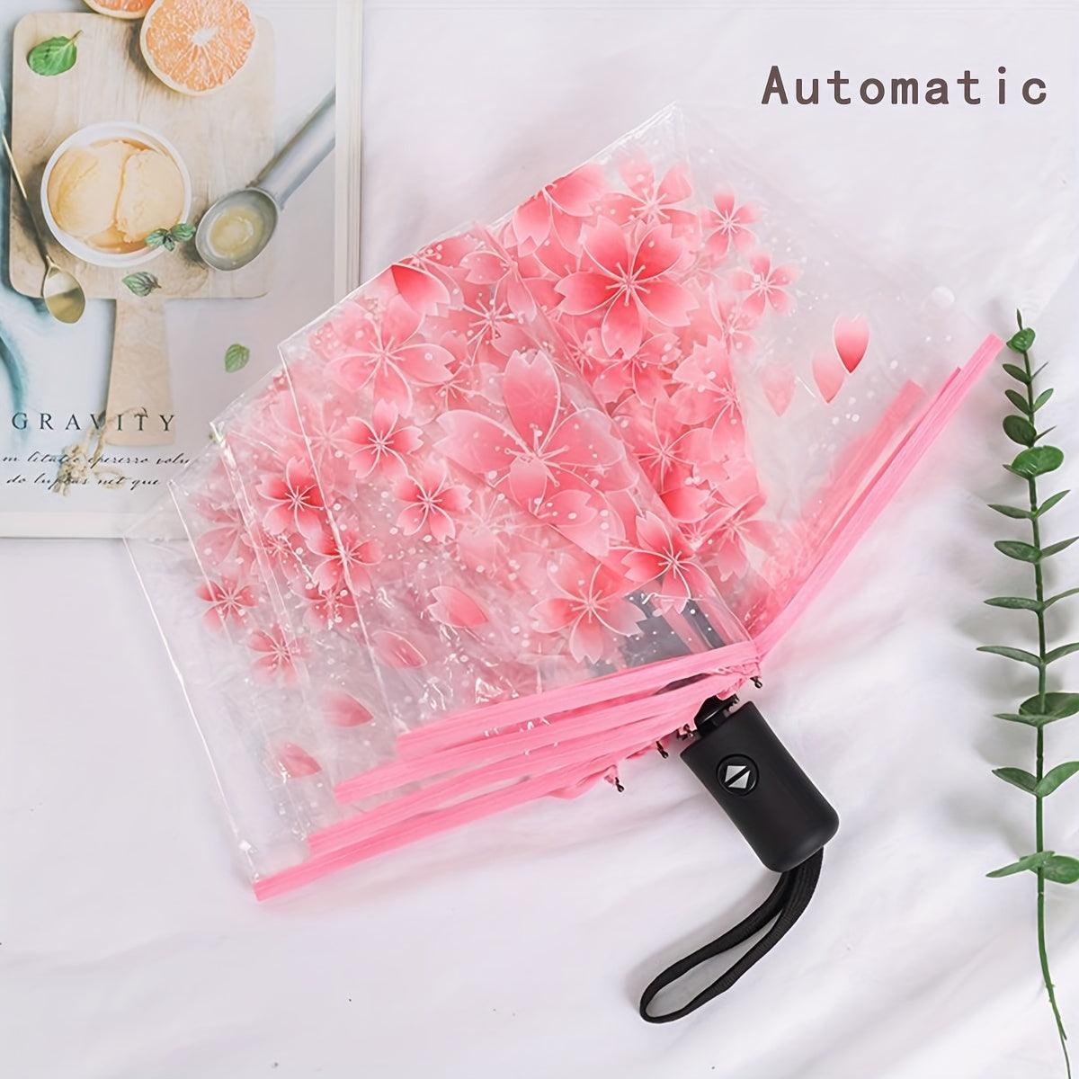 Paraguas de cerezo en flor impermeable, a prueba de viento, compacto, para viajes, escuela y oficina, con 8 varillas