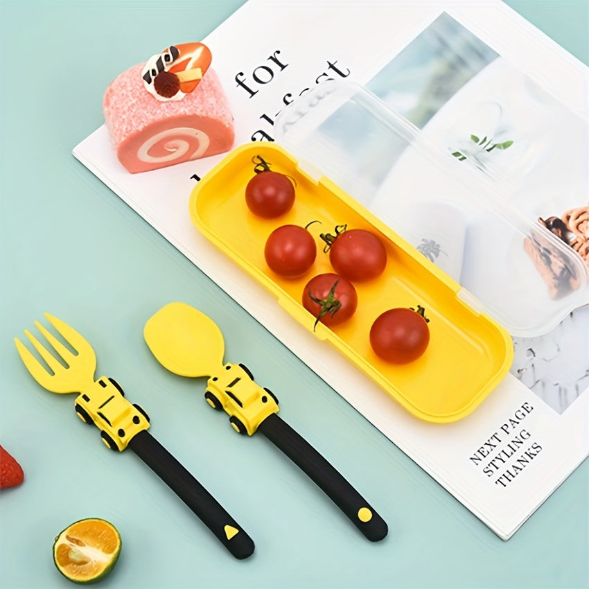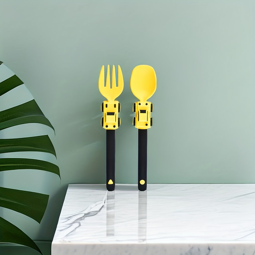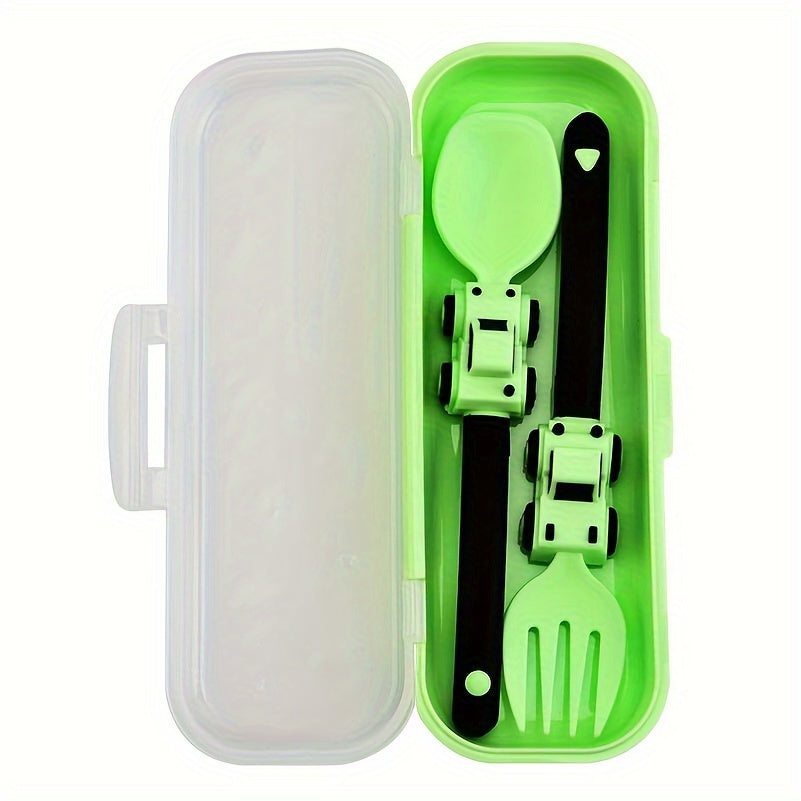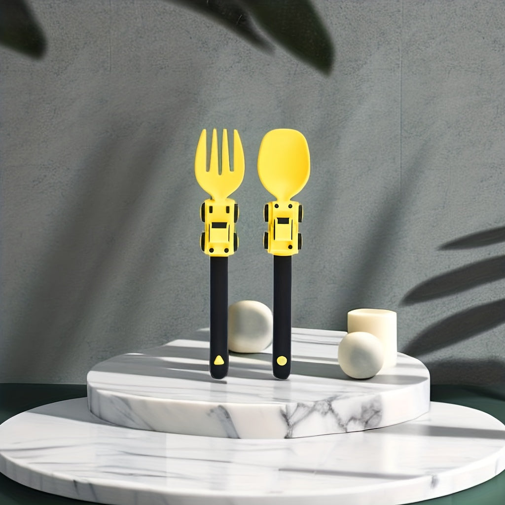 Juego de utensilios de silicona para niños con coche de dibujos animados y temática deportiva para comer de forma independiente