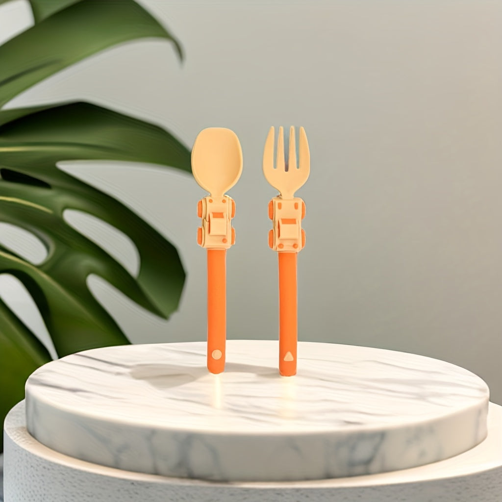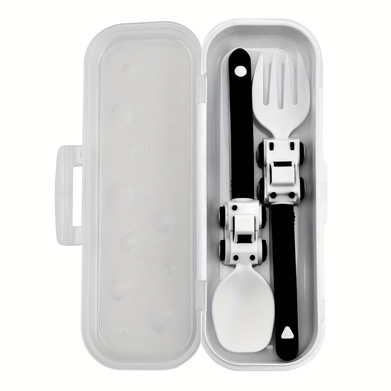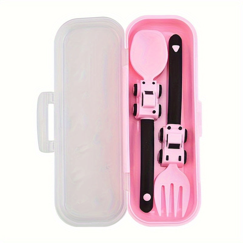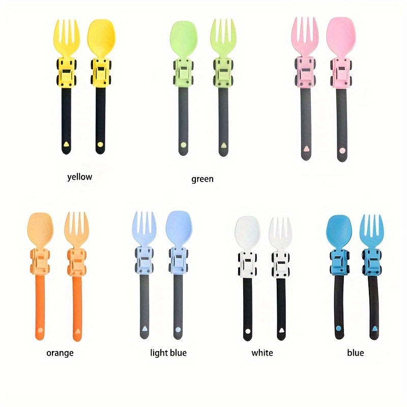 Juego de utensilios de silicona para niños con coche de dibujos animados y temática deportiva para comer de forma independiente