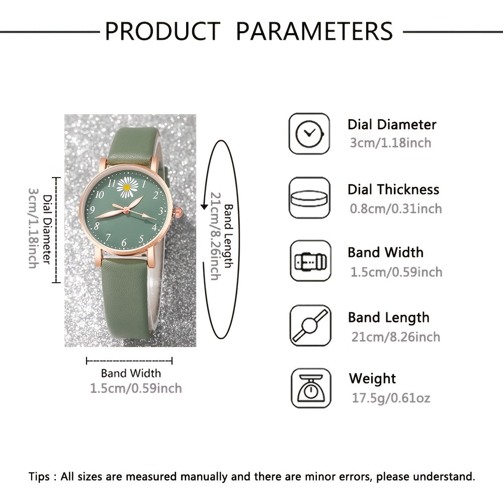 Conjunto de reloj de cuarzo Daisy Flower para mujer con reloj de cuero y pulsera