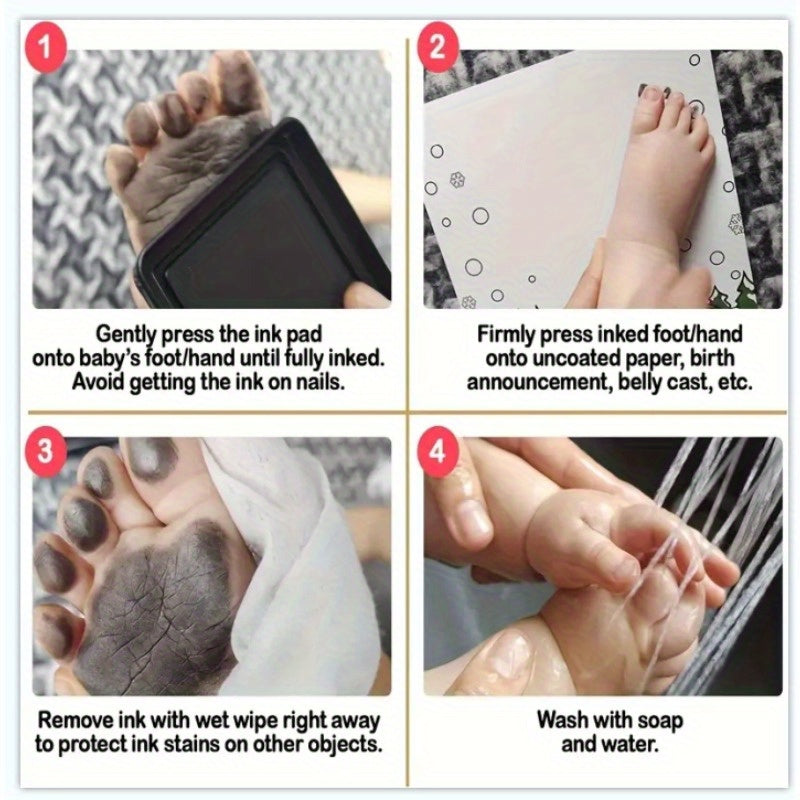 Kit de huellas de bebé con almohadilla de tinta no tóxica y 2 hojas de papel para recuerdos de recién nacido