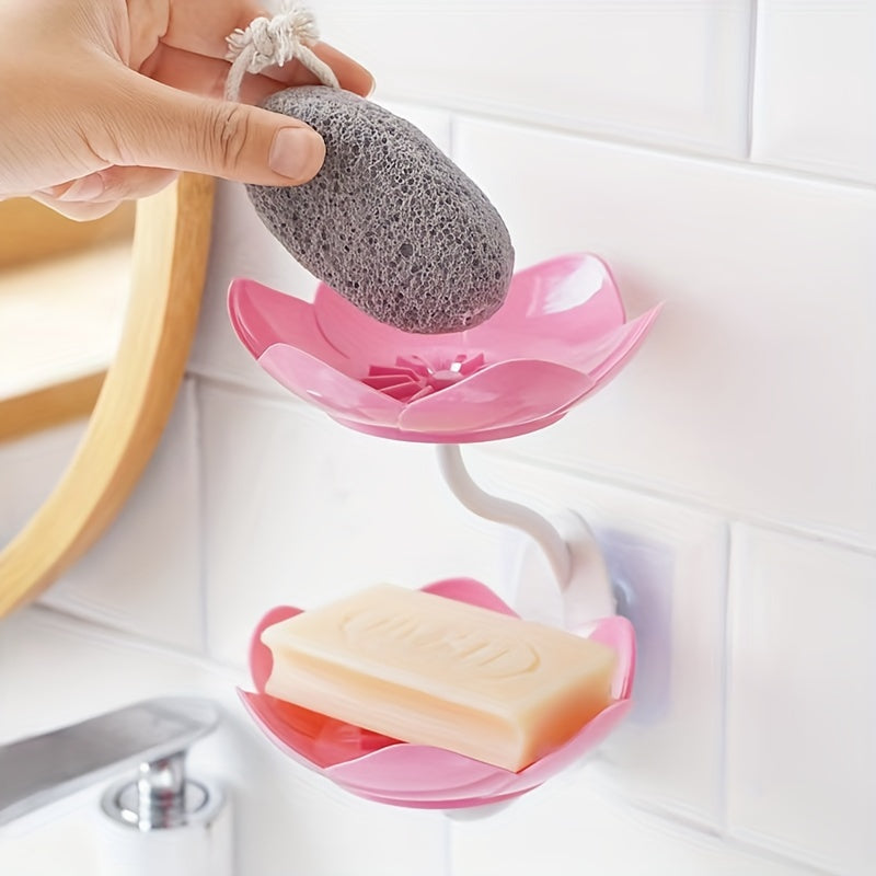 Jabonera de pared de doble capa con diseño floral, auto-drenante, sin taladro