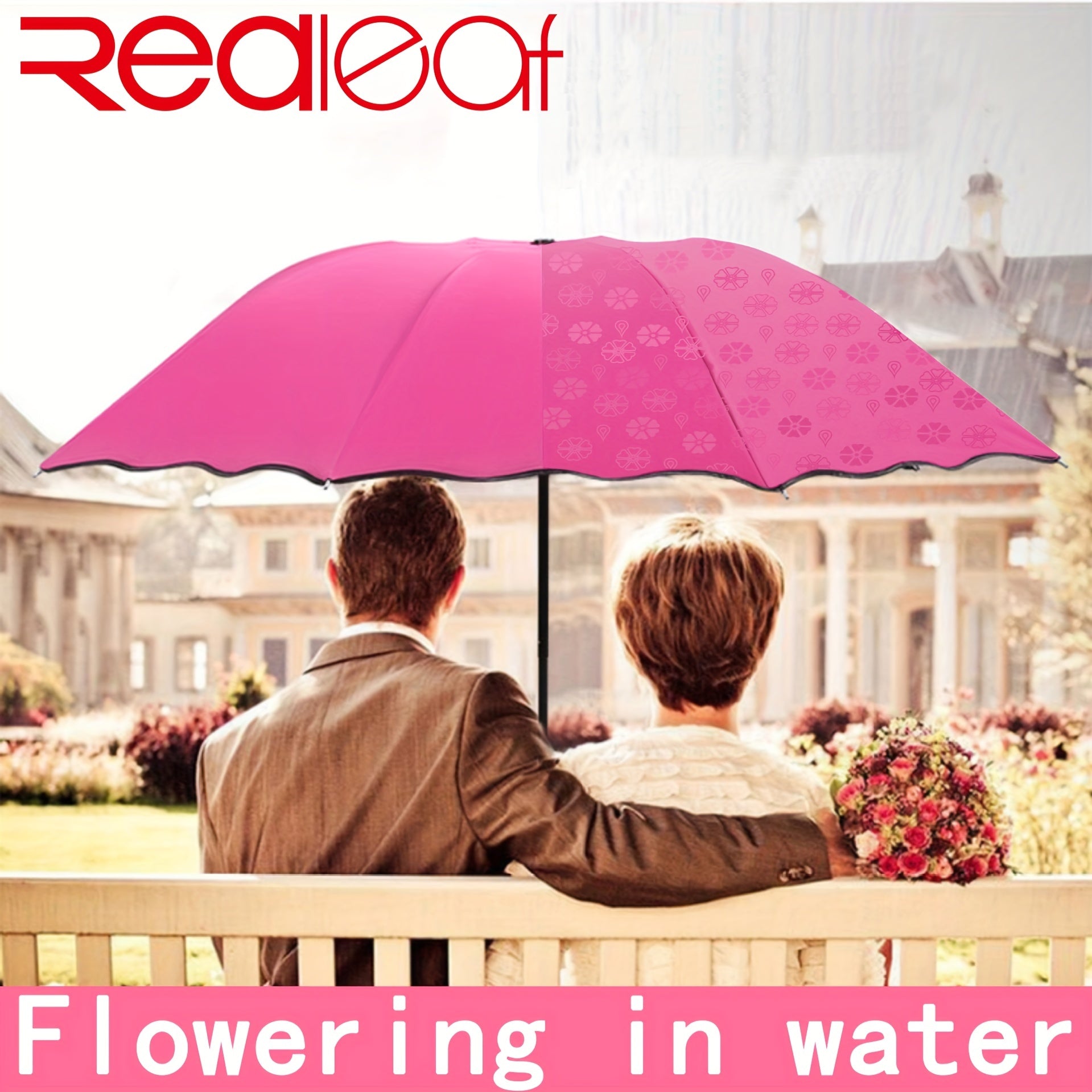 Sombrilla de doble uso con diseño de flor de agua en floración, plegable, varillas de acero