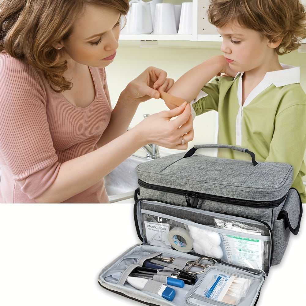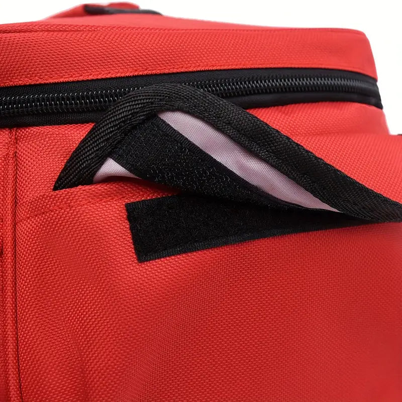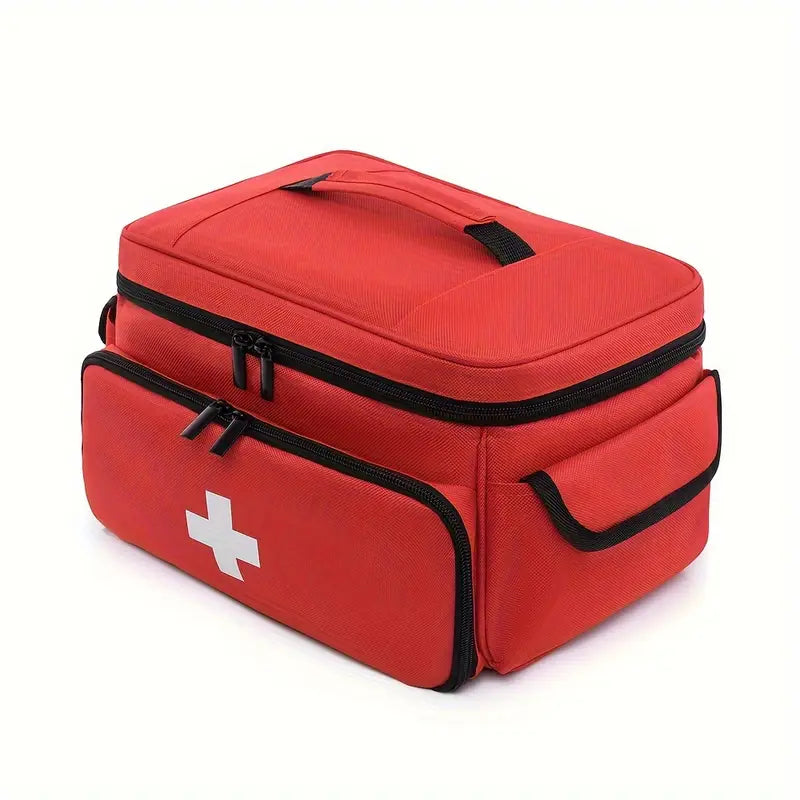 Kit de primeros auxilios de PU duradero con múltiples compartimentos para uso en el hogar y emergencias en rojo, negro y gris