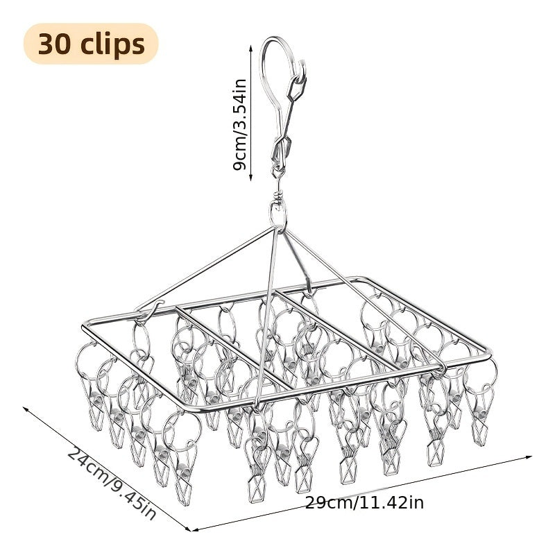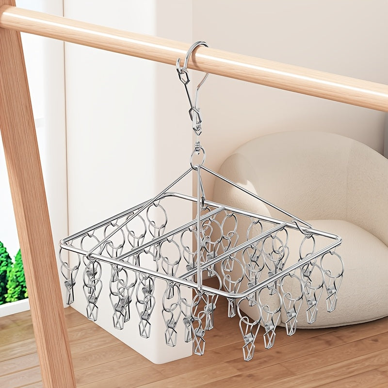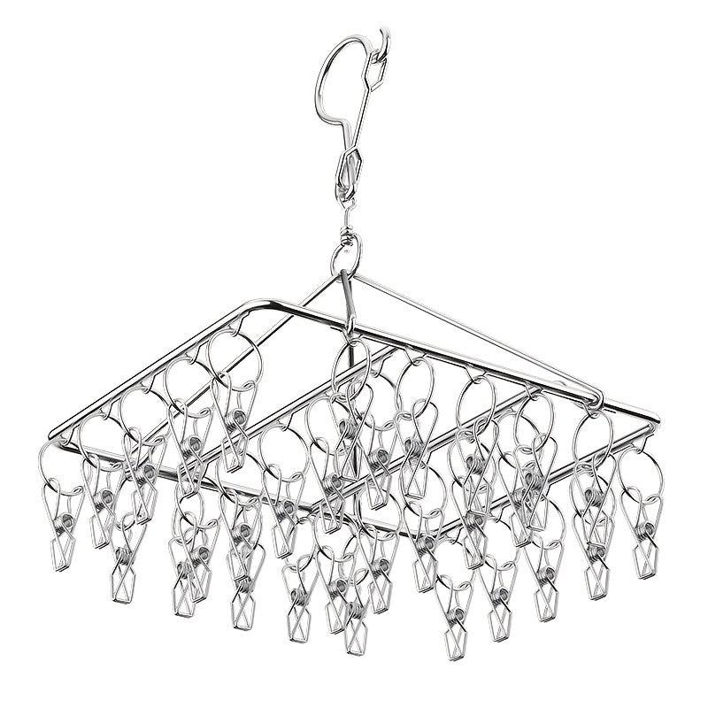 Estante para secar calcetines de acero inoxidable con 20/30/40 clips y gancho giratorio