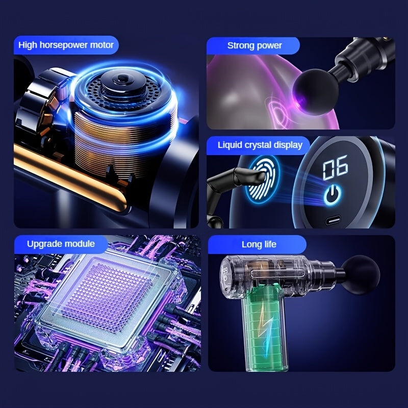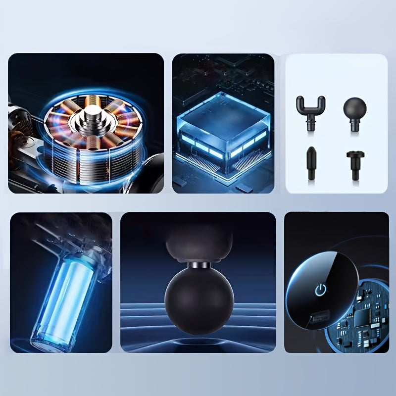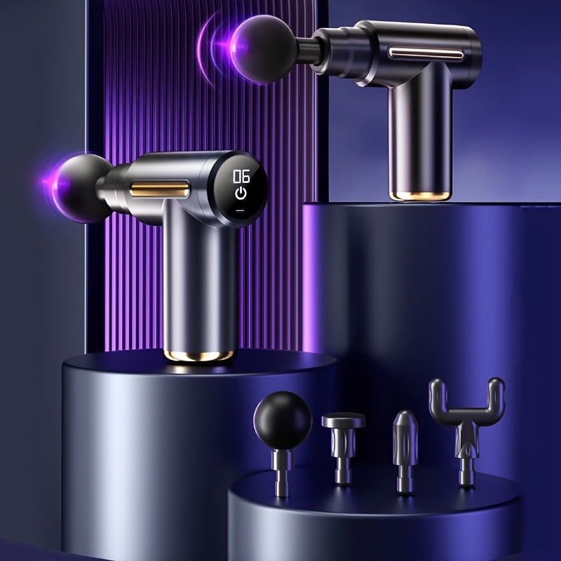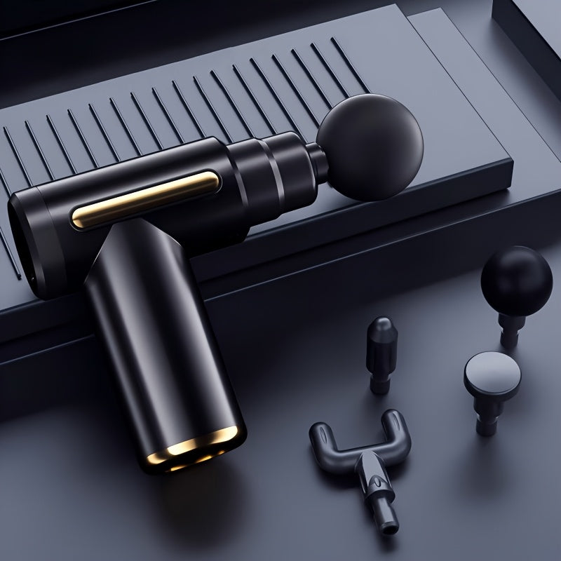 Masajeador eléctrico de fascia con 4 cabezales reemplazables, compacto y ligero para relajación post-ejercicio