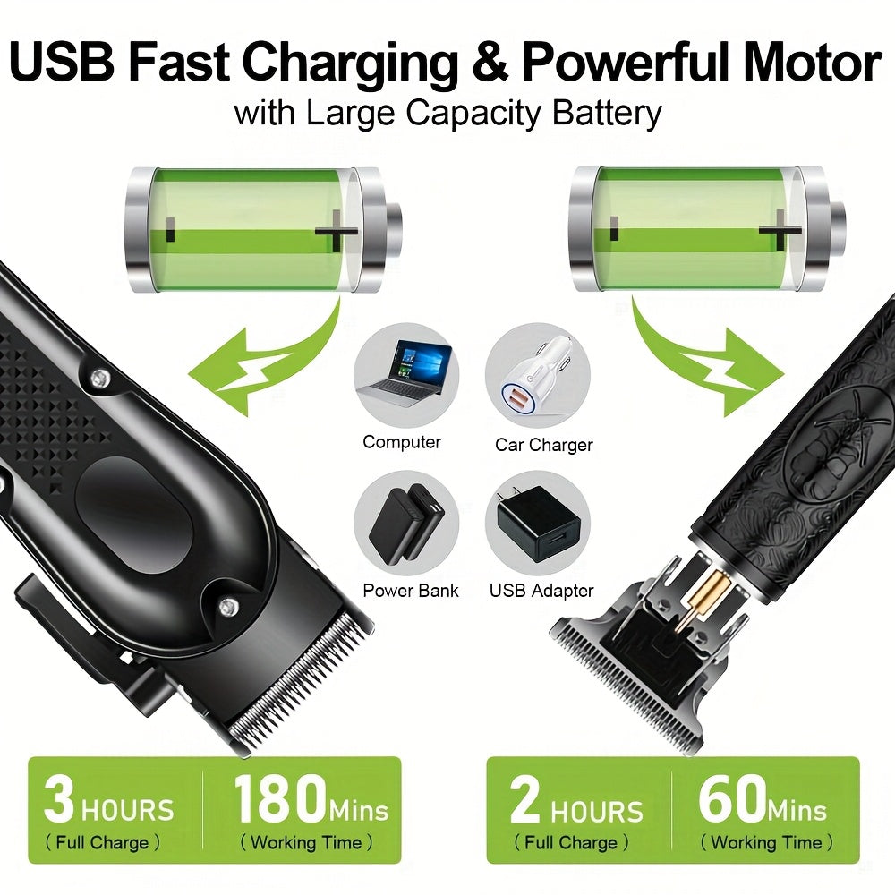 Set de cortapelos eléctrico con pantalla digital, inalámbrico, carga USB, peine limitador, cuerpo de ABS, regalo perfecto para hombres, Día del Padre
