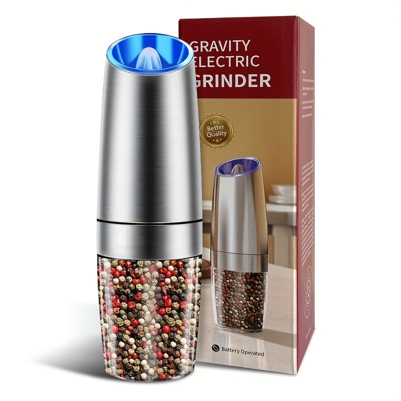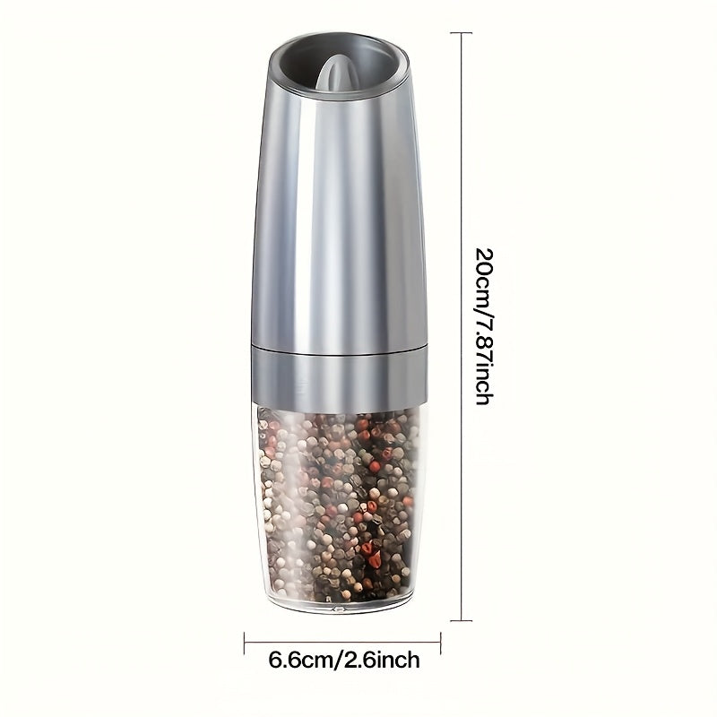Molino eléctrico de especias con sensor de gravedad, cuerpo de acero inoxidable, tamaño de partícula ajustable, luz LED para hogares, restaurantes y picnics