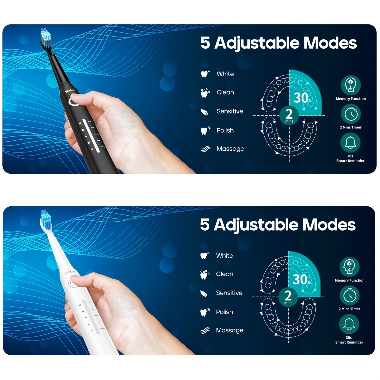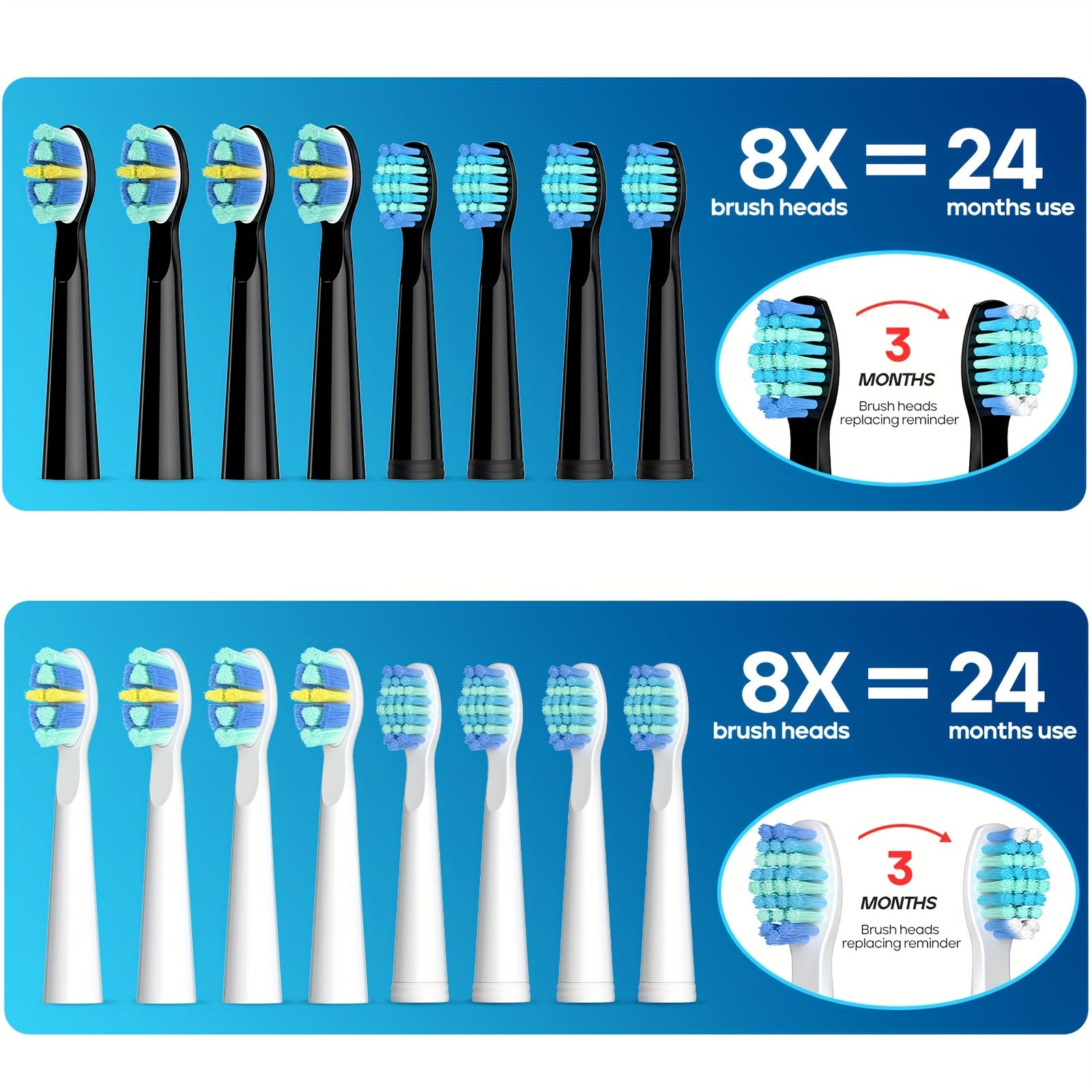 Cepillo de dientes eléctrico para adultos negro y blanco, recargable, 8 cabezales de cepillo