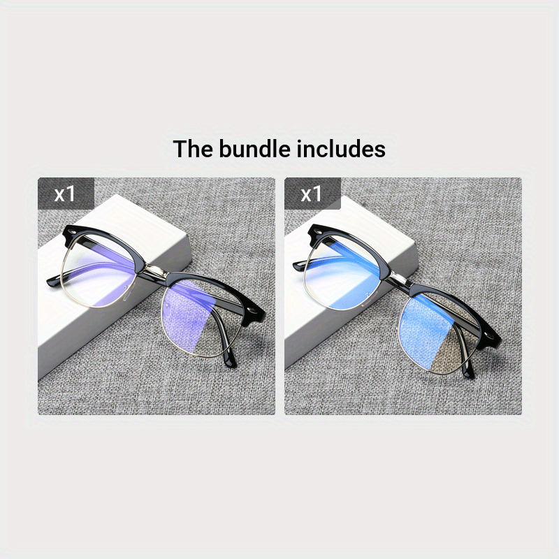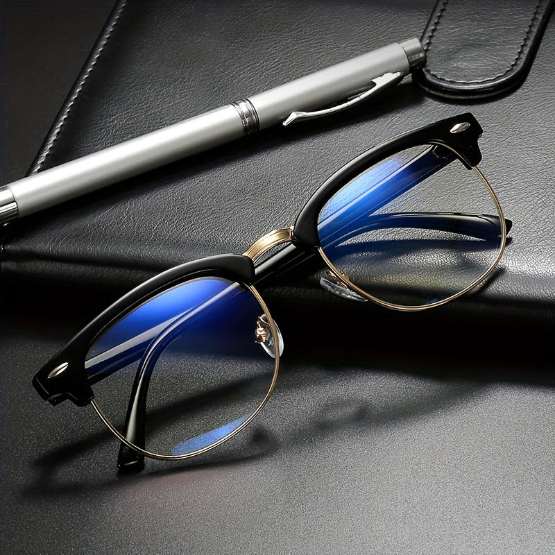 Gafas unisex de medio armazón negro con bloqueo de luz azul toque dorado retro