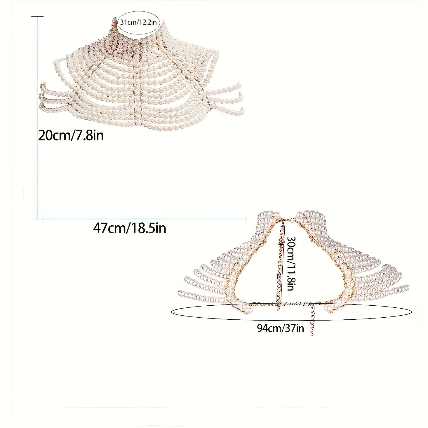Joyería de cadena para el cuerpo estilo boho con perlas falsas y detalle de chal