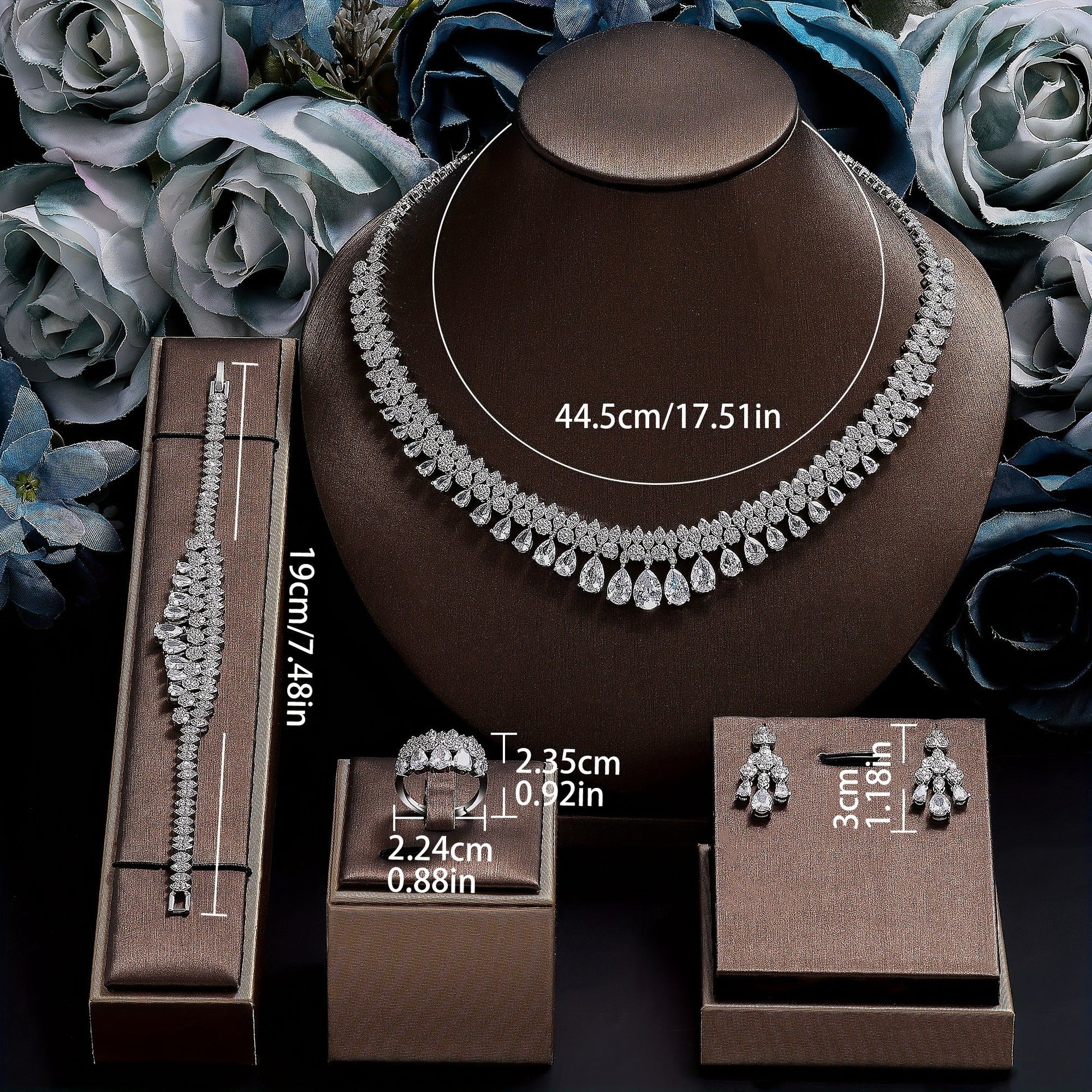 Conjunto de joyería nupcial elegante con zirconia cúbica, collar, pendientes, anillo y pulsera chapados en oro de 18 quilates