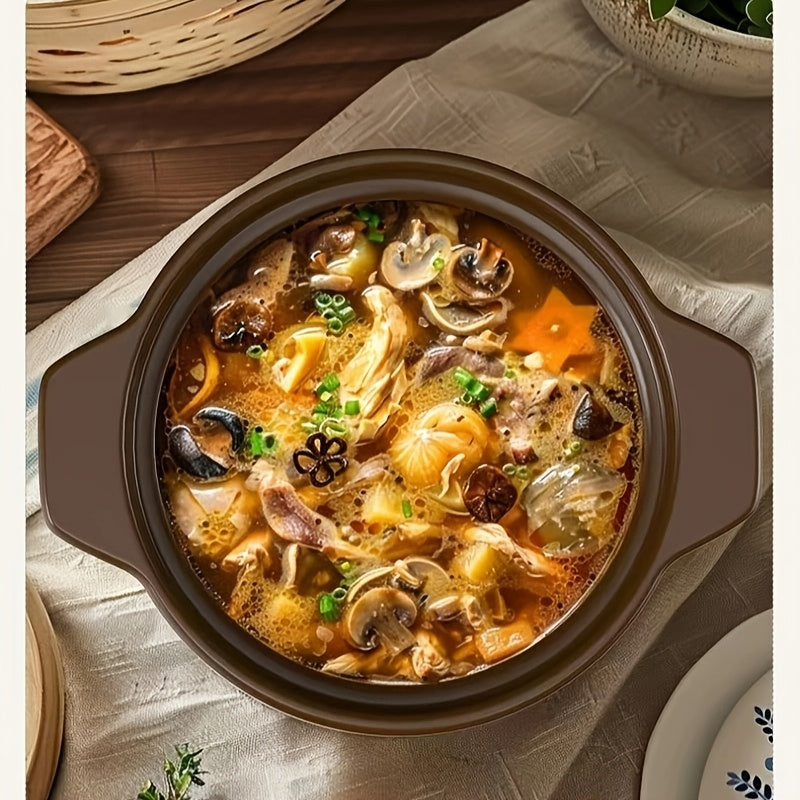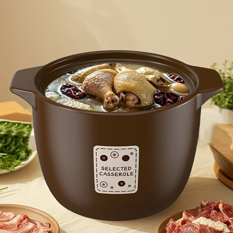Olla de cerámica marrón de 4600ml con diseño reforzado, compatible con inducción, utensilios de cocina