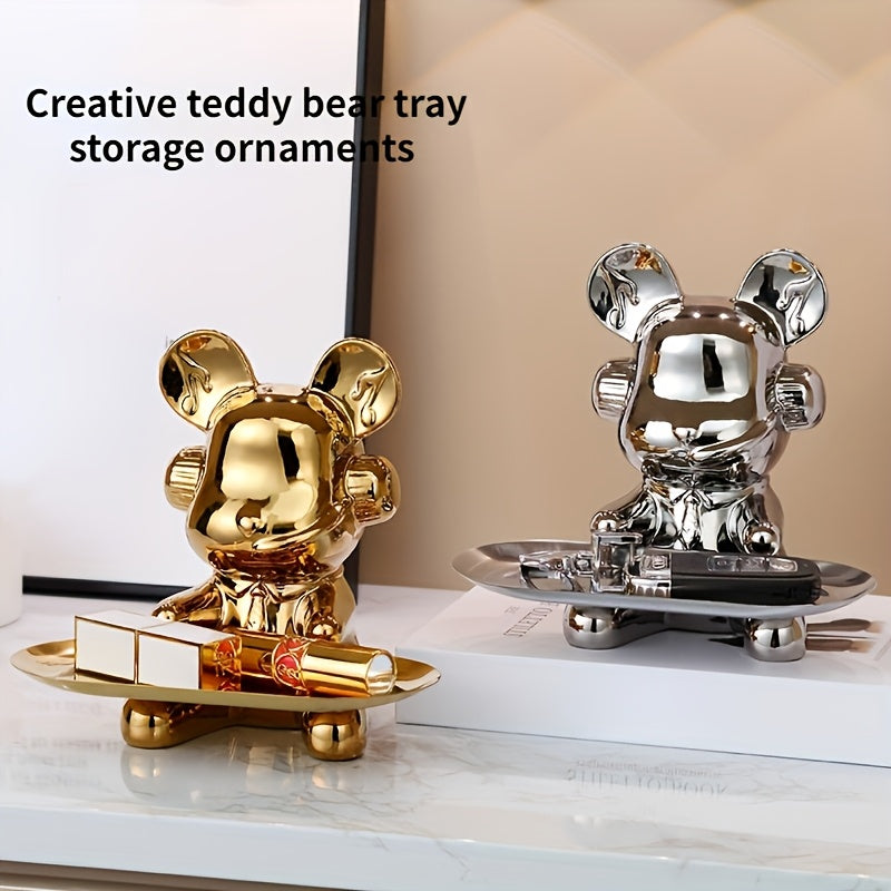 Bandeja para llaves y frasco decorativo para ahorrar dinero en forma de oso de cerámica