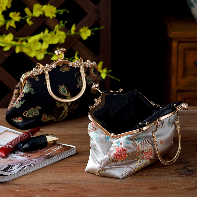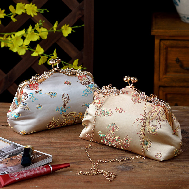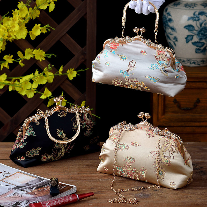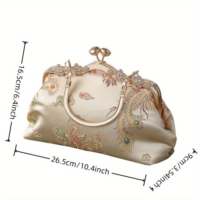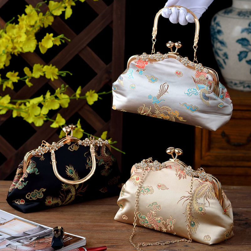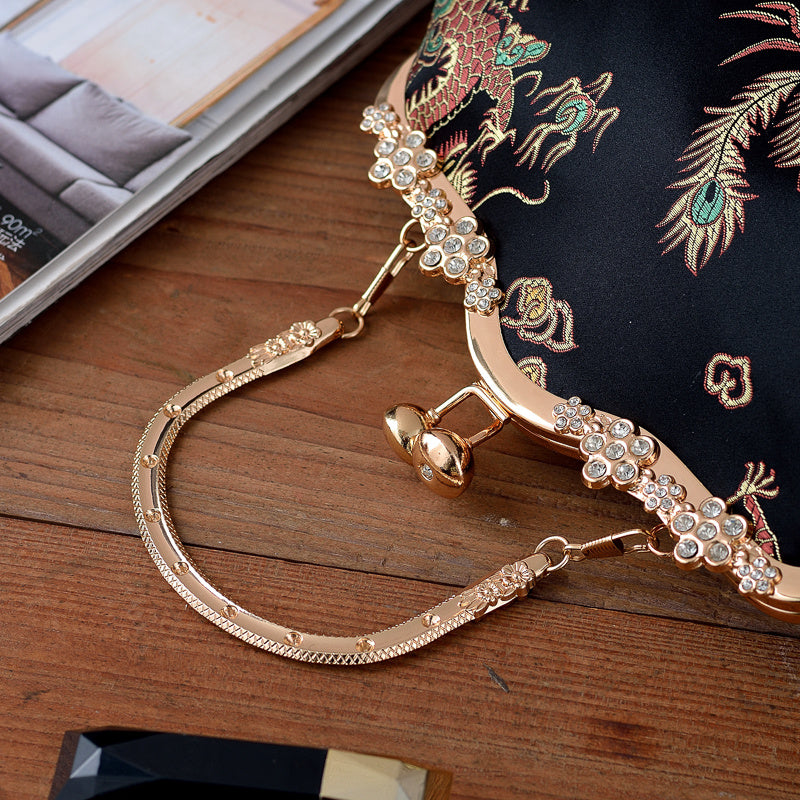 Bolso de mano de noche para mujer con adorno de cuentas, correa ajustable, estilo vintage, negro, oro, plata