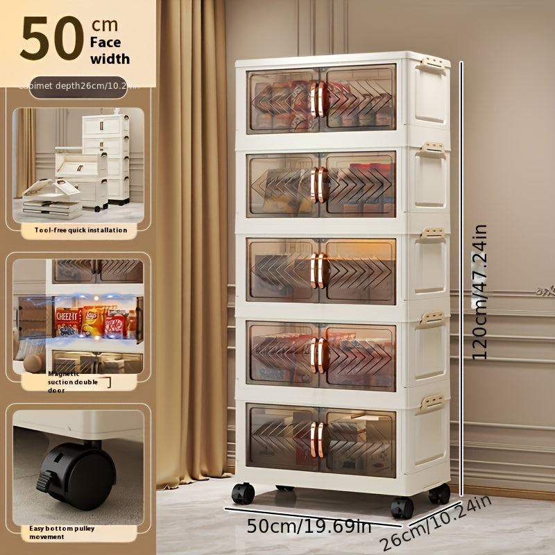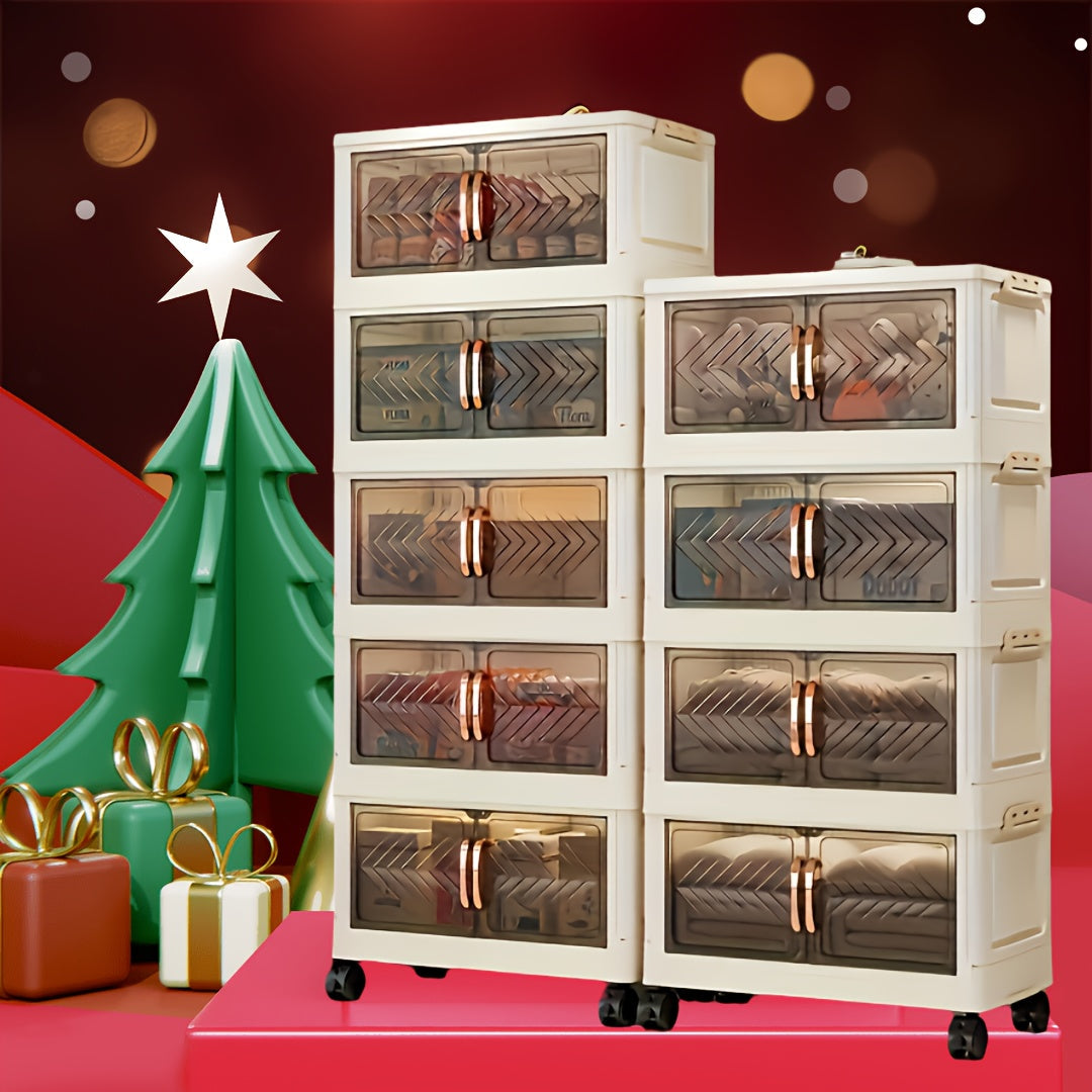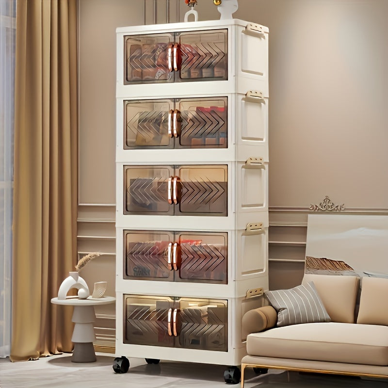 Organizador de armario de plástico rectangular con ruedas para almacenamiento en armario, grande y plegable