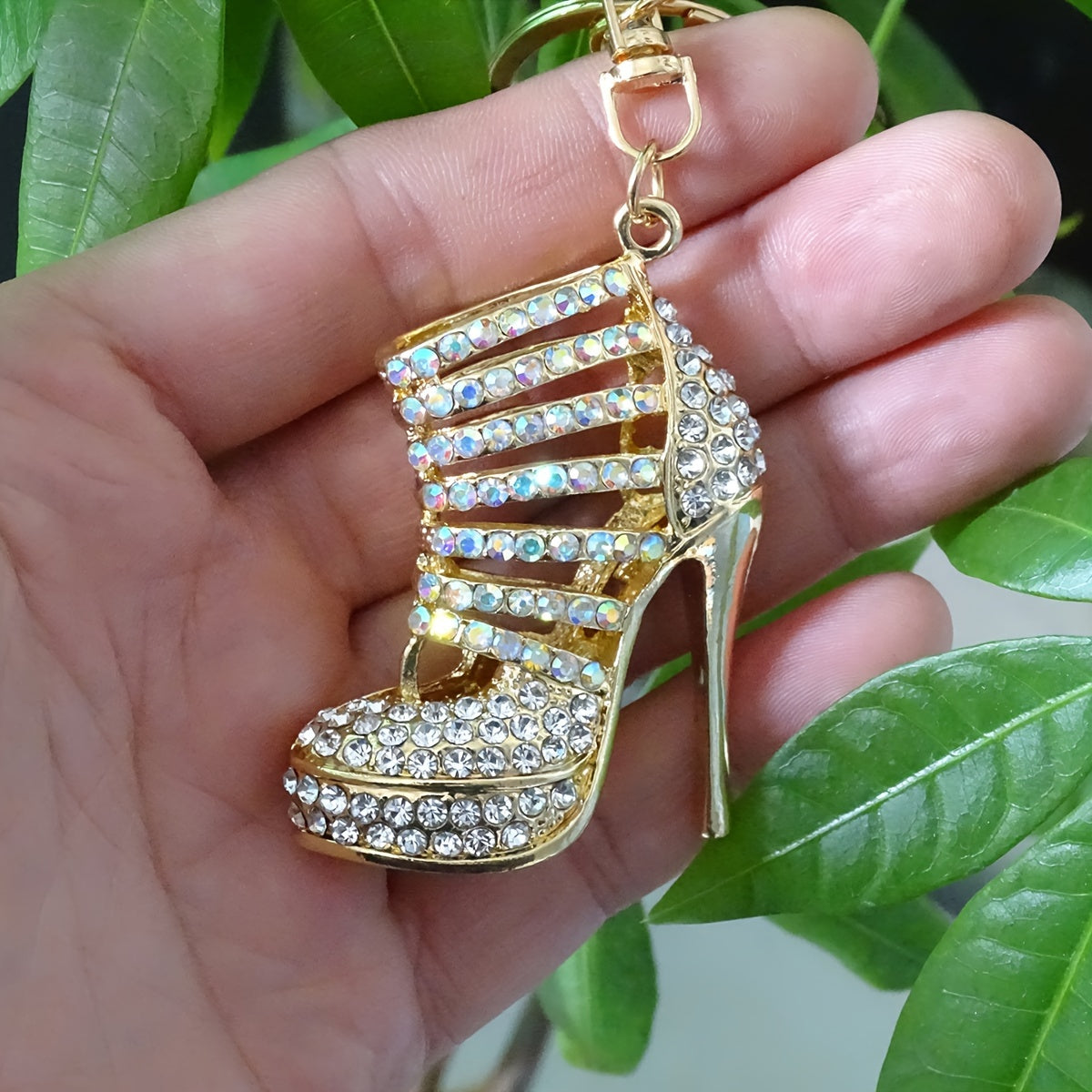 Llavero de aleación con pedrería elegante con cierre de langosta para bolsos y coches