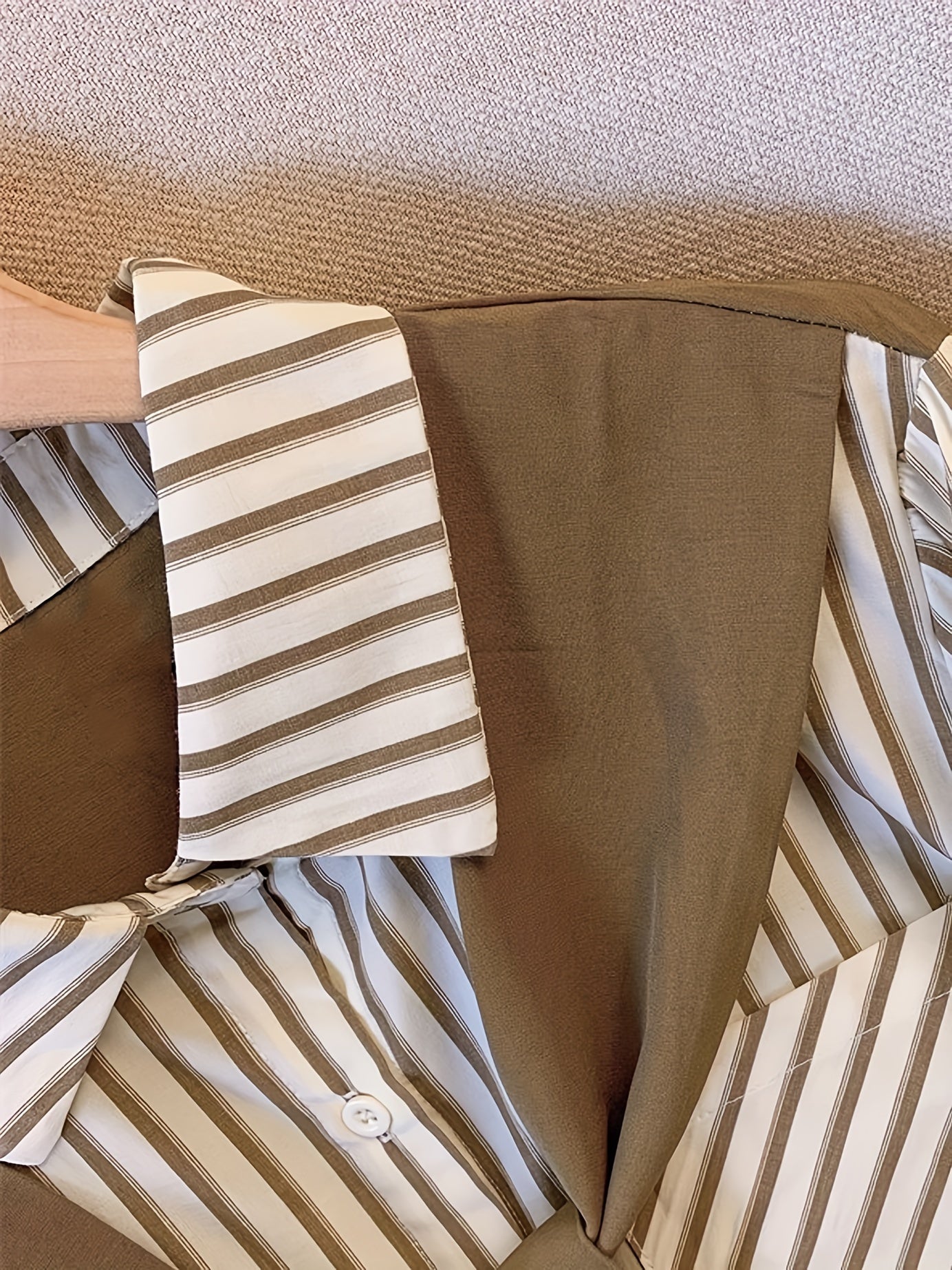 Camisa elegante de poliéster a rayas para adultos con cuello cuadrado y mangas largas para primavera y otoño