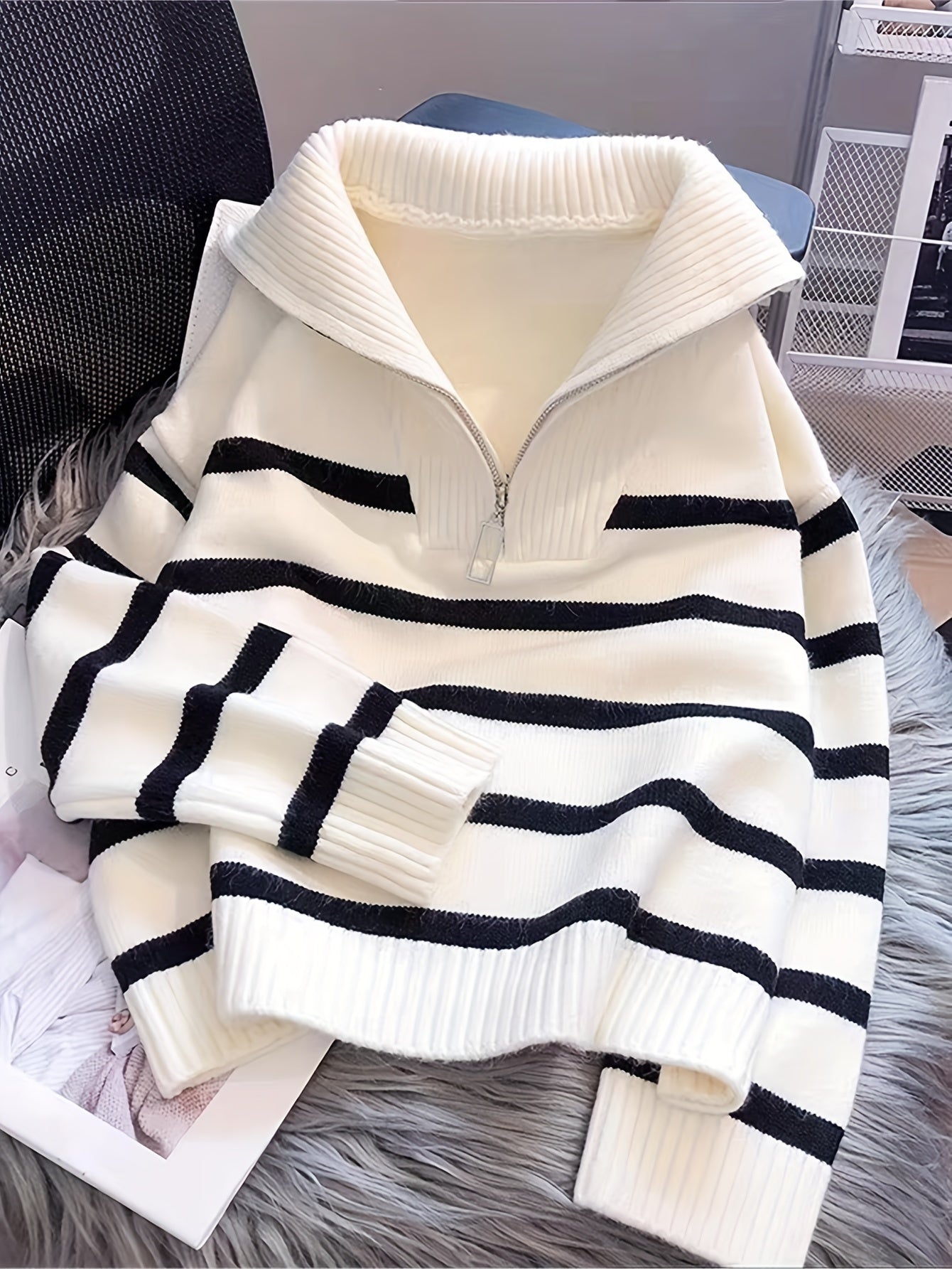 Suéter de punto con cremallera y rayas para mujer acrílico poliéster otoño invierno