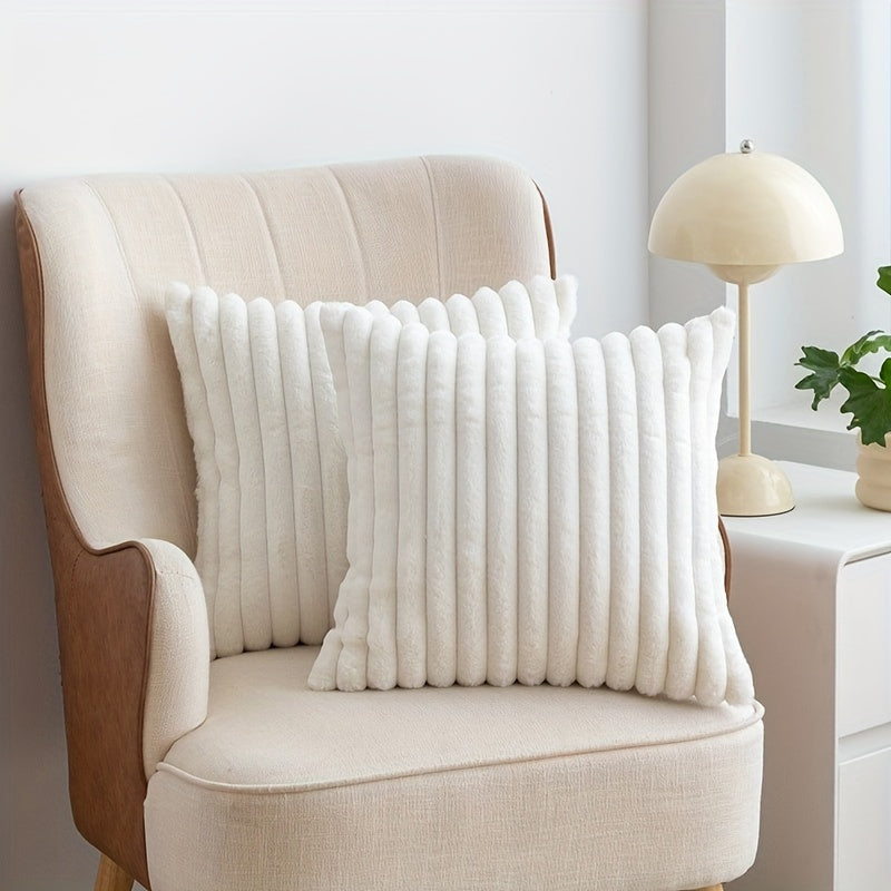 Funda de cojín de pelo sintético de conejo suave, mullida y acogedora, estilo nórdico, lavable a máquina