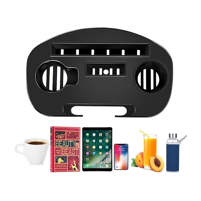Bandeja con portavasos para sillón de gravedad cero negro con soporte para teléfono y tableta